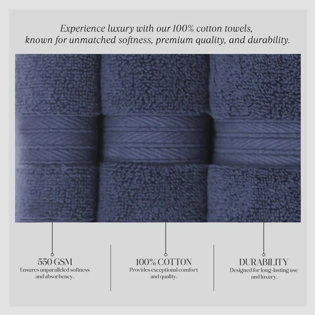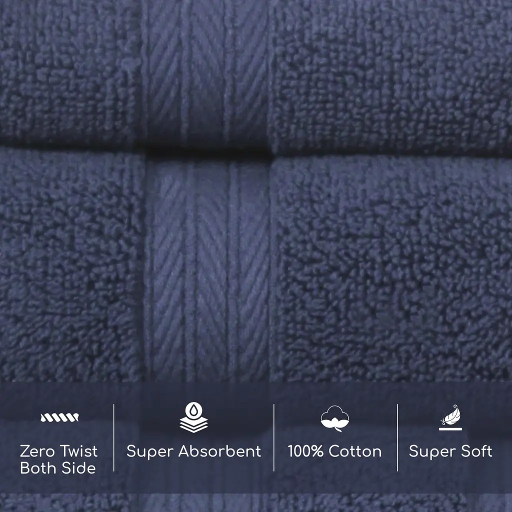 Home Weavers Elegance Essentials 550gsm Cotton Zero Twist Super Absorbent Bath Towel Set Of 6 - 27"x54", 16"x24", 13"x13" - Navy