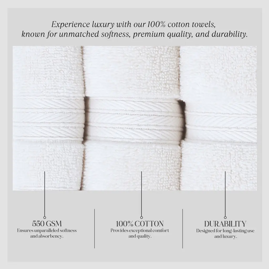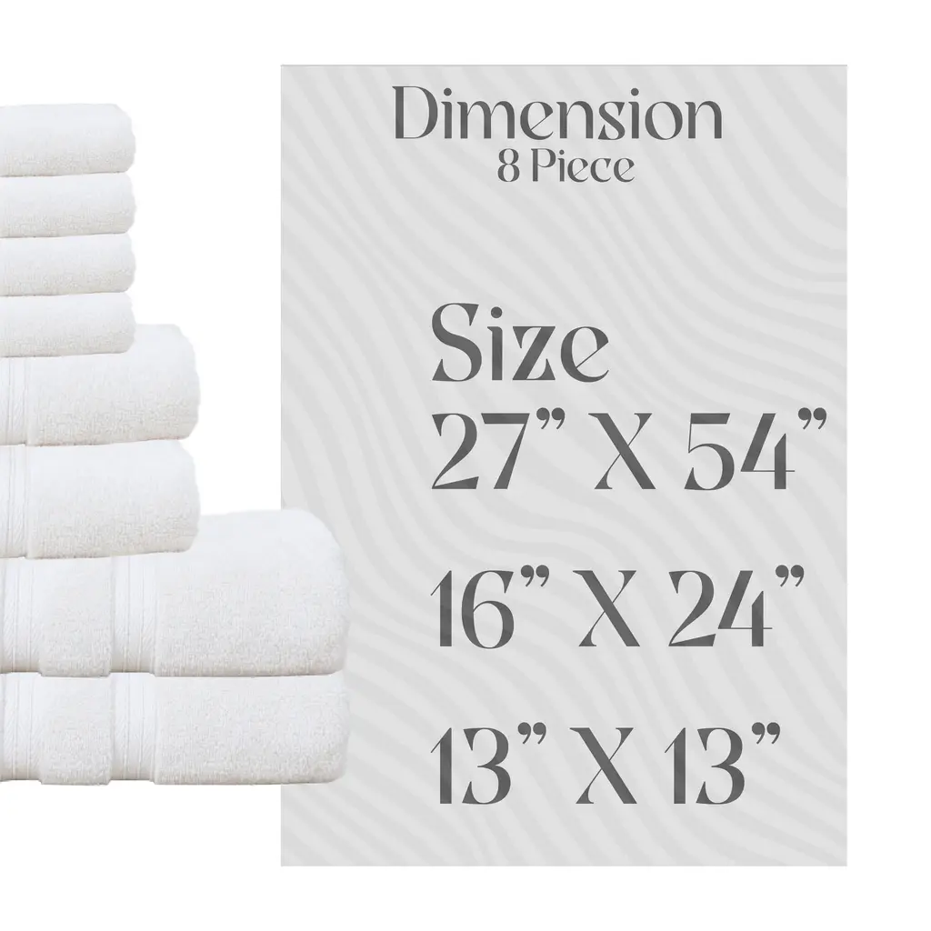 Home Weavers Elegance Essentials 550gsm Cotton Zero Twist Super Absorbent Bath Towel Set Of 8 - 27"x54", 16"x24", 13"x13" - Ivory