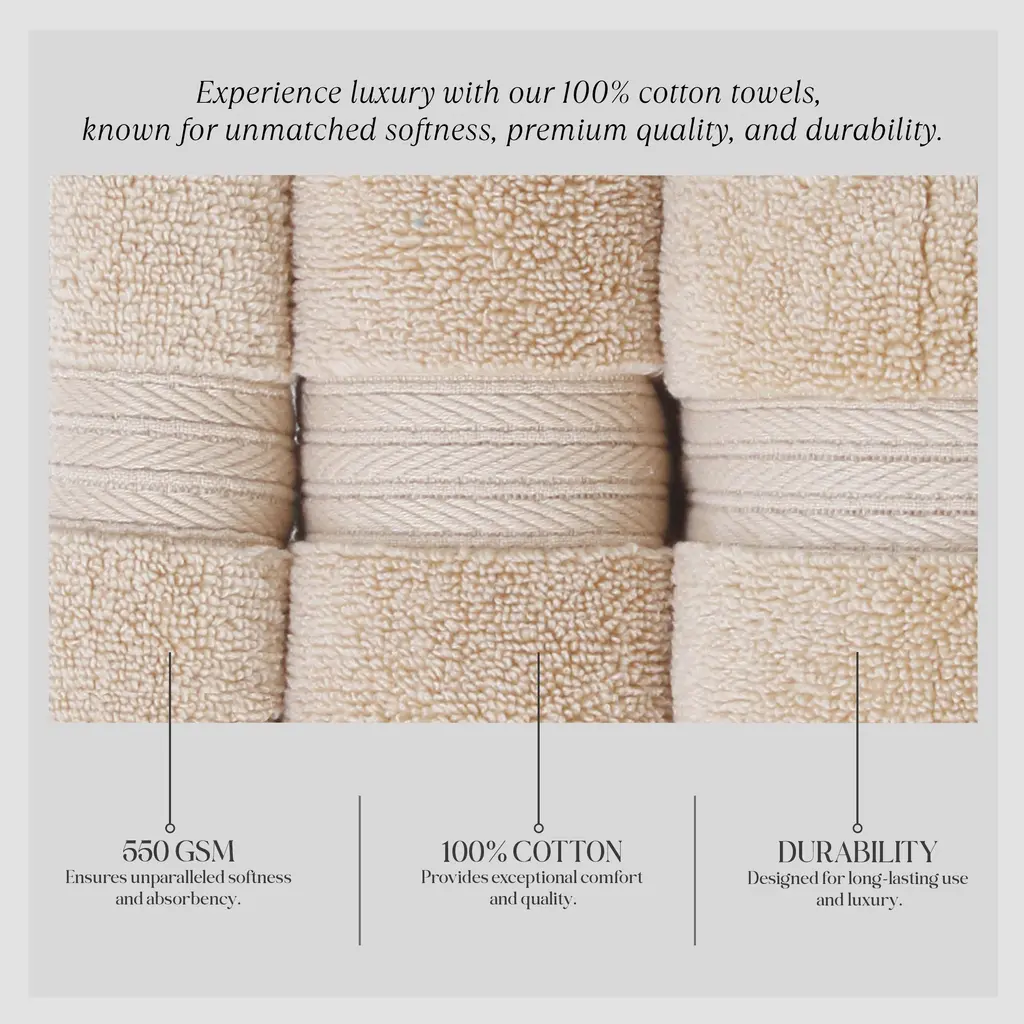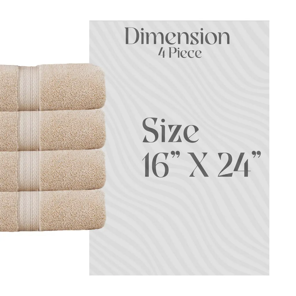 Home Weavers Elegance Essentials 550gsm Cotton Zero Twist Super Absorbent Hand Towel Set Of 4 - 16"x24" - Linen