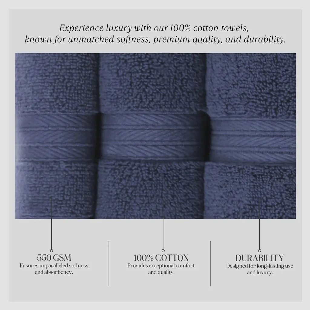Home Weavers Elegance Essentials 550gsm Cotton Zero Twist Super Absorbent Hand Towel Set Of 4 - 16"x24" - Navy
