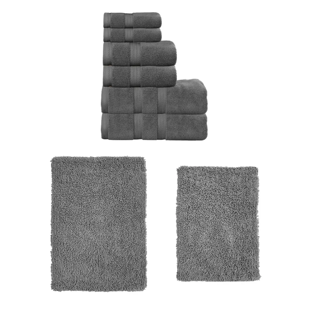Home Weavers Fantasia Collection 100% Soft Cotton 2 Pc Bath Towel Set & 1 Pc 21x34" Bath Rug, Machine Wash & Non Slip (Set Of 3) - Dark Gray - 21"x34" + 27"x54"(2)