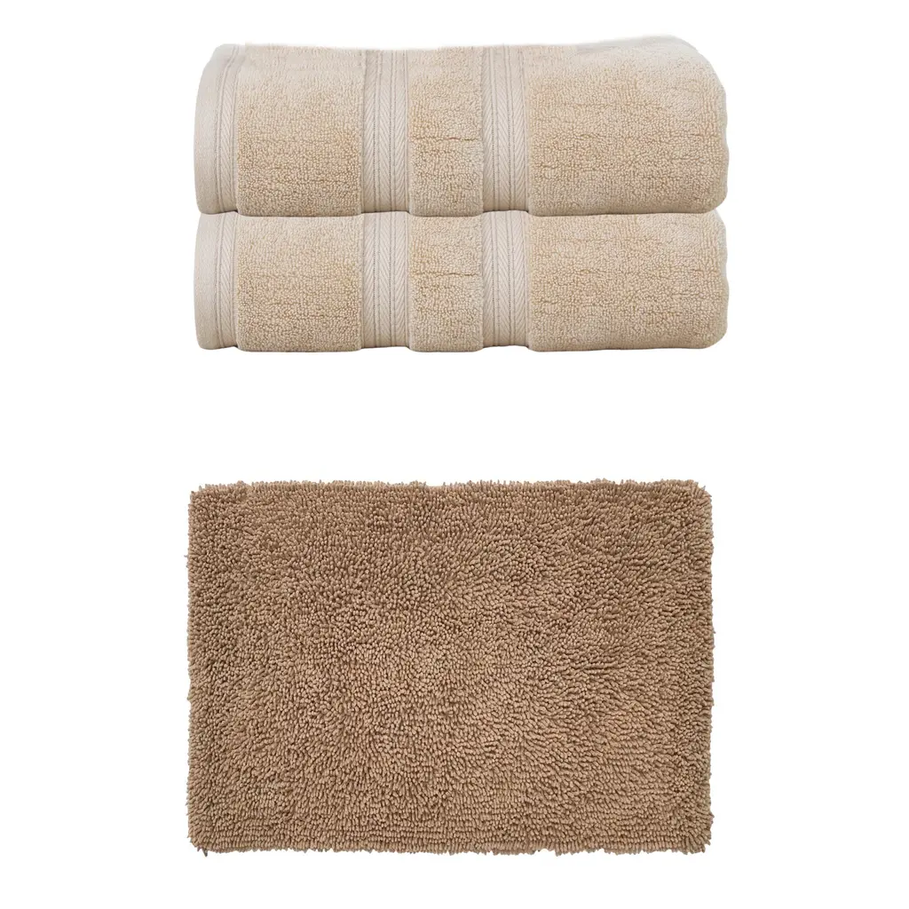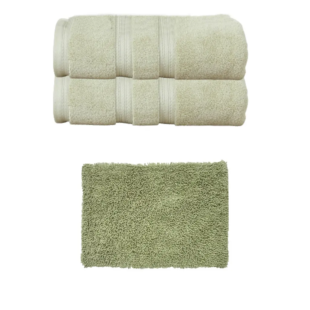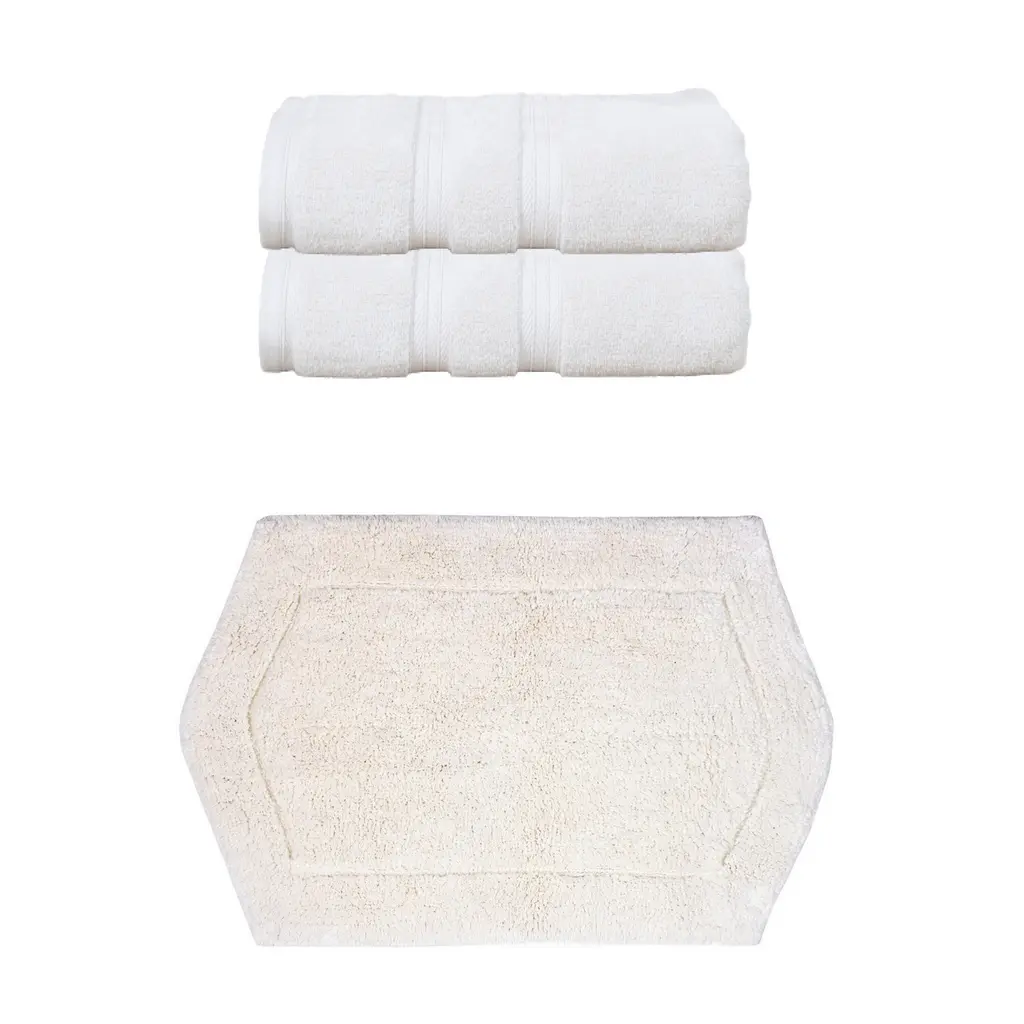 Home Weavers Fantasia Collection 100% Soft Cotton 2 Pc Bath Towel Set & 1 Pc 21x34" Bath Rug, Machine Wash & Non Slip (Set Of 3) - Ivory - 21"x34" + 27"x54"(2)