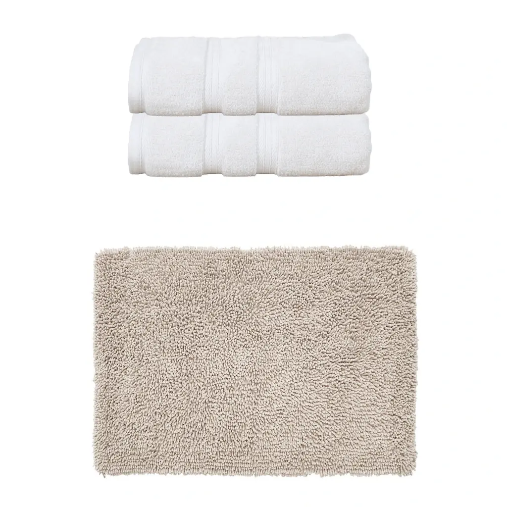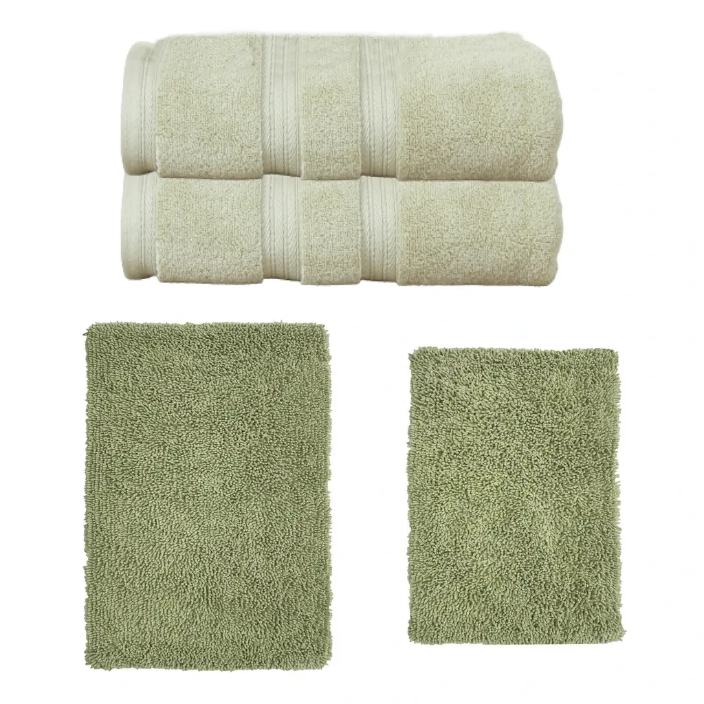 Transform Your Bath Experience with Home Weavers Fantasia Collection Bath Rug and Elegance Essential Towel Set Upgrade your bathroom with the luxurious Home Weavers Fantasia Collection, featuring a 100% cotton tufted bath rug and the Elegance Essential towel set. Home Weavers Fantasia Collection Bath Rug (24"x40") Crafted from 100% cotton, this tufted bath rug combines plush comfort with durability. Its absorbent construction ensures quick drying, while the tufted texture provides a soft cushion underfoot. Available in a range of elegant colors to complement any bathroom décor. Elegance Essential Towel 2 Pcs Set (27"x54") Wrap yourself in luxury with the Elegance Essential towel set, made from high-quality cotton for exceptional softness and absorbency. This set includes generously sized bath towels perfect for daily use. Available in classic colors that effortlessly elevate your bathroom style.