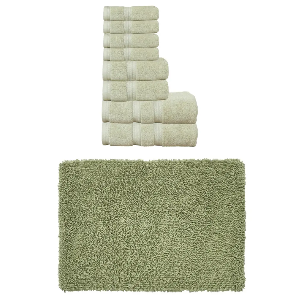 Home Weavers Fantasia Collection 100% Soft Cotton 6 Pc Towel Set & 1 Pc 17x24" Bath Rug, Machine Washable & Non Slip (Set Of 7) - Green - 17"x24" + 27"x54"(2) + 16"x24"(2) + 13"x13"(2)