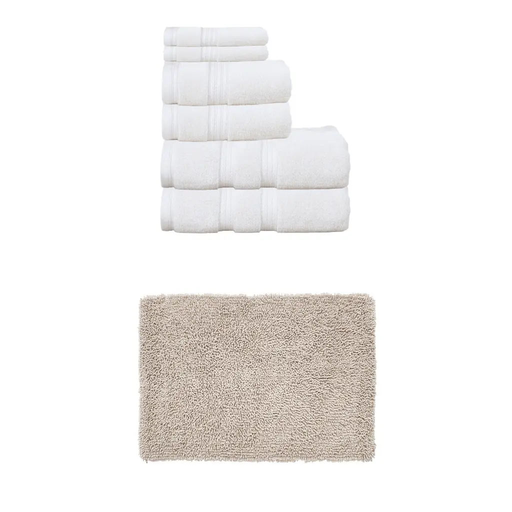Transform your bathroom into a spa-like retreat with the Home Weavers Fantasia Collection. Crafted from 100% cotton, this luxurious bath set combines comfort and elegance to elevate your daily routine. The tufted bath rug, measuring 17"x24", offers plush softness underfoot while absorbing moisture efficiently. Pair it with our Elegance Essential bath towel (27"x54"), hand towel (16"x24"), and washcloth (13"x13") for a coordinated look that enhances any bathroom decor. Treat yourself to the ultimate in comfort and style with the Home Weavers Fantasia Collection, where quality meets sophistication. This Seven Piece set Includes :- 1 Piece Bath Rug + 6 pcs Towel Set (2 Bath Towel, 2 Hand Towel, 2 Wash Cloth)