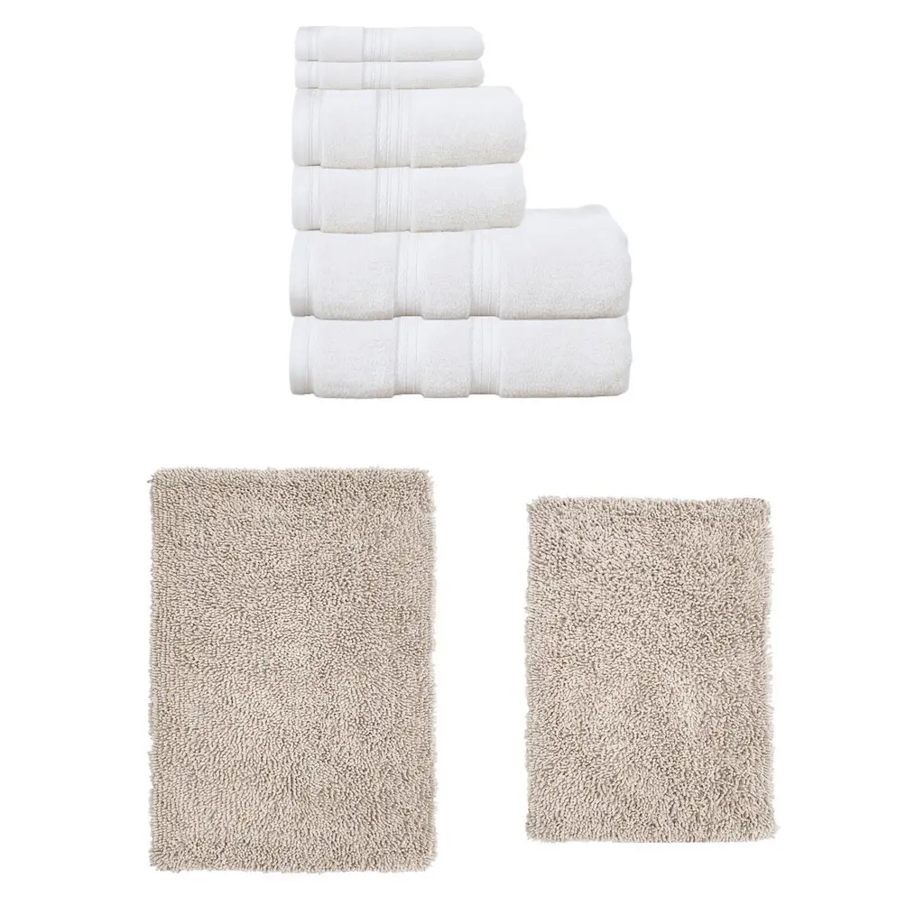 Transform your bathroom into a spa-like retreat with the Home Weavers Fantasia Collection. Crafted from 100% cotton, this luxurious bath set combines comfort and elegance to elevate your daily routine. The tufted bath rug, measuring 21"x34", offers plush softness underfoot while absorbing moisture efficiently. Pair it with our Elegance Essential bath towel (27"x54"), hand towel (16"x24"), and washcloth (13"x13") for a coordinated look that enhances any bathroom decor. Treat yourself to the ultimate in comfort and style with the Home Weavers Fantasia Collection, where quality meets sophistication. This Seven Piece set Includes :- 1 Piece Bath Rug + 6 pcs Towel Set (2 Bath Towel, 2 Hand Towel, 2 Wash Cloth)
