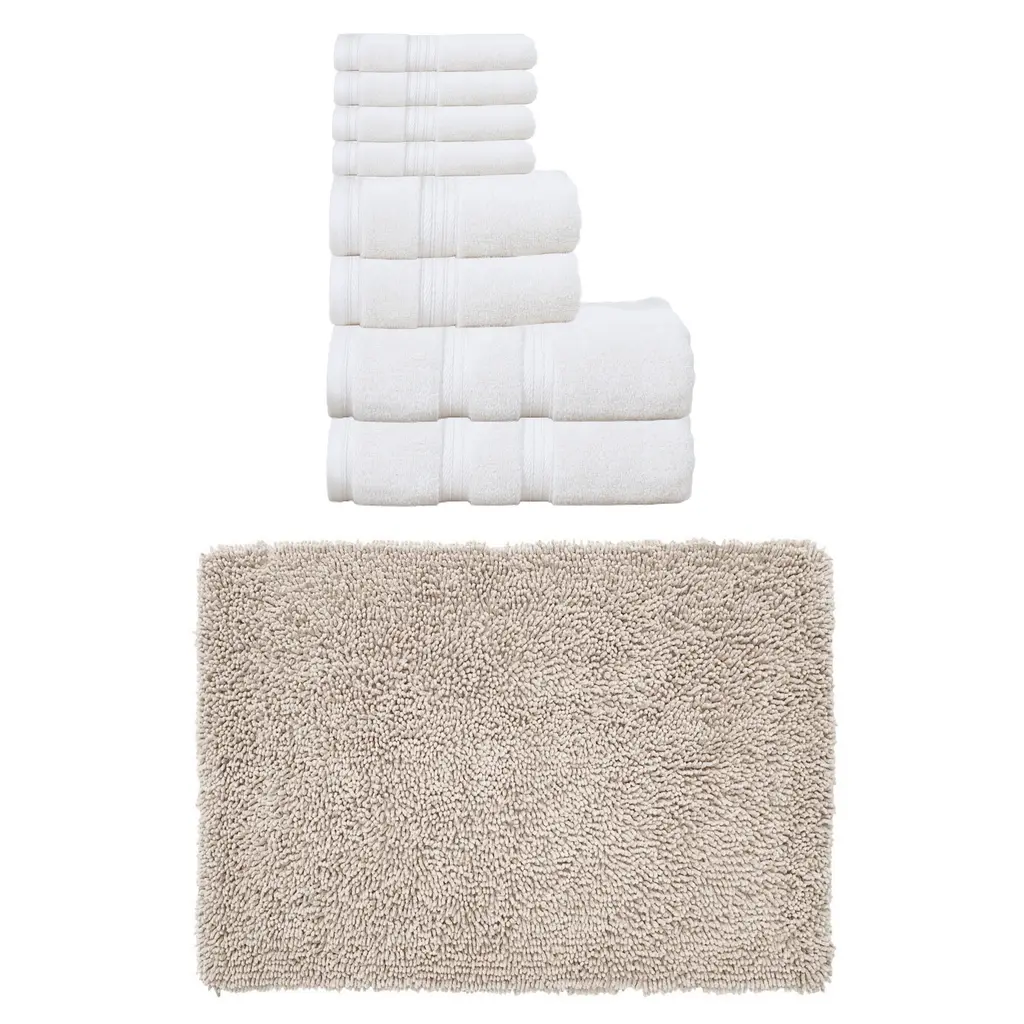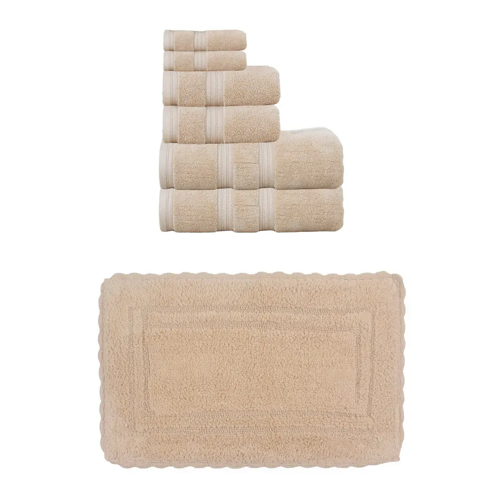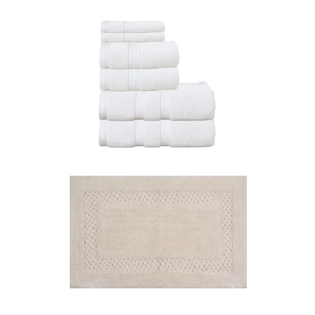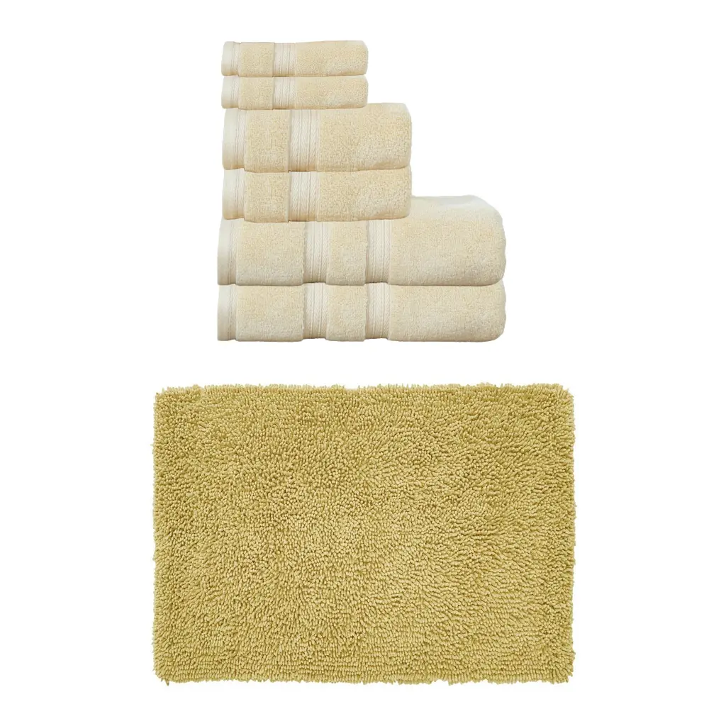 Home Weavers Fantasia Collection 100% Soft Cotton 6 Pc Towel Set & 1 Pc 21x34" Bath Rug, Machine Washable & Non Slip (Set Of 7) - Ivory - 21"x34" + 27"x54"(2) + 16"x24"(2) + 13"x13"(2)