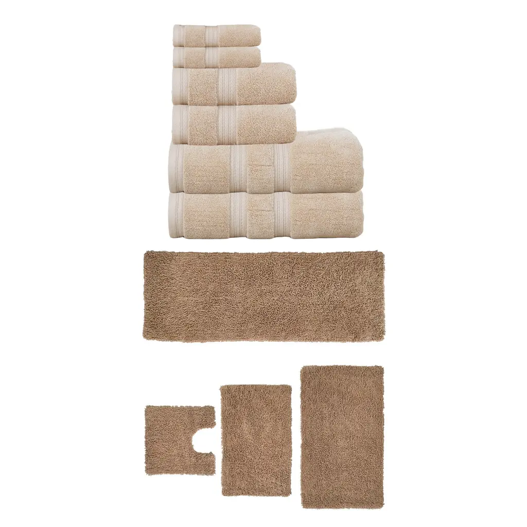 Transform your bathroom into a spa-like sanctuary with the Home Weavers 100% Soft Cotton Super Absorbent Bath Towels & Rugs Combo. Made from luxurious zero-twist cotton, these towels and rugs offer unmatched softness and absorbency while being gentle on the skin. The set includes a range of sizes, from plush bath towels to coordinating rugs, all designed to enhance your bathing experience. Each rug features a non-slip backing for safety and convenience, ensuring they stay securely in place. Plus, their machine-washable design makes for effortless maintenance. Elevate your daily routine with this premium combo that combines comfort, durability, and style. Set included: 4 Bath Rug (17"x24" + 21"x34" + 20"x20" + 22"x60"), 2 Bath Towels (27"x54") Premium Quality: Each piece is crafted with care using 100% cotton for superior comfort and durability. Elegant Design: Enhance your bathroom aesthetic with a choice of sophisticated colors and a tufted & Non Slip bath rug that adds texture and warmth. Practical Comfort: Enjoy the soft, plush feel of the bath rug and the absorbency of the towel set, designed to meet your daily bathing needs. Washing Instructions : Machine-washable design makes for effortless maintenance.