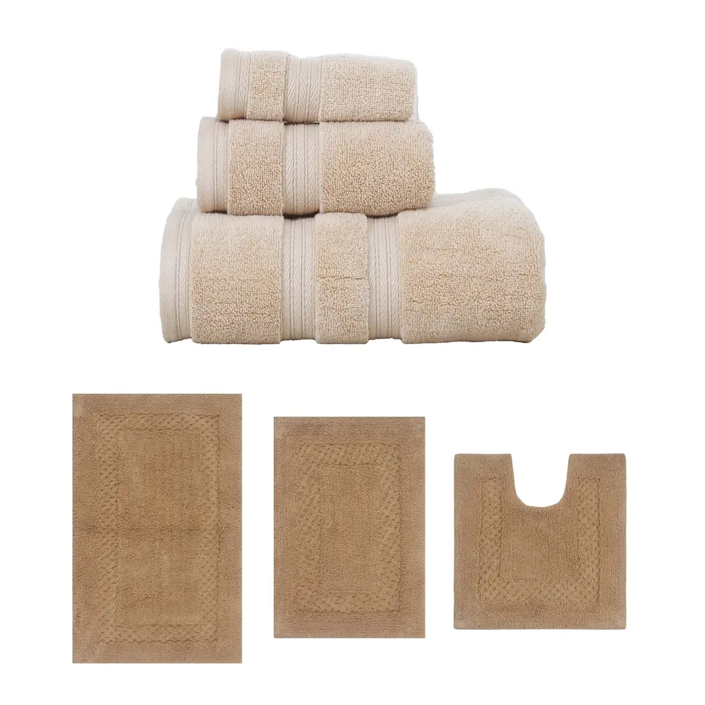 Home Weavers Fantasia Collection 100% Soft Cotton Super Absorbent 3 Pc Towel Set & 3 Pc Bath Rug Set, Machine Wash (Set Of 6) - Linen - 3 Pc Bath Rug + 3 Pc Towel Set