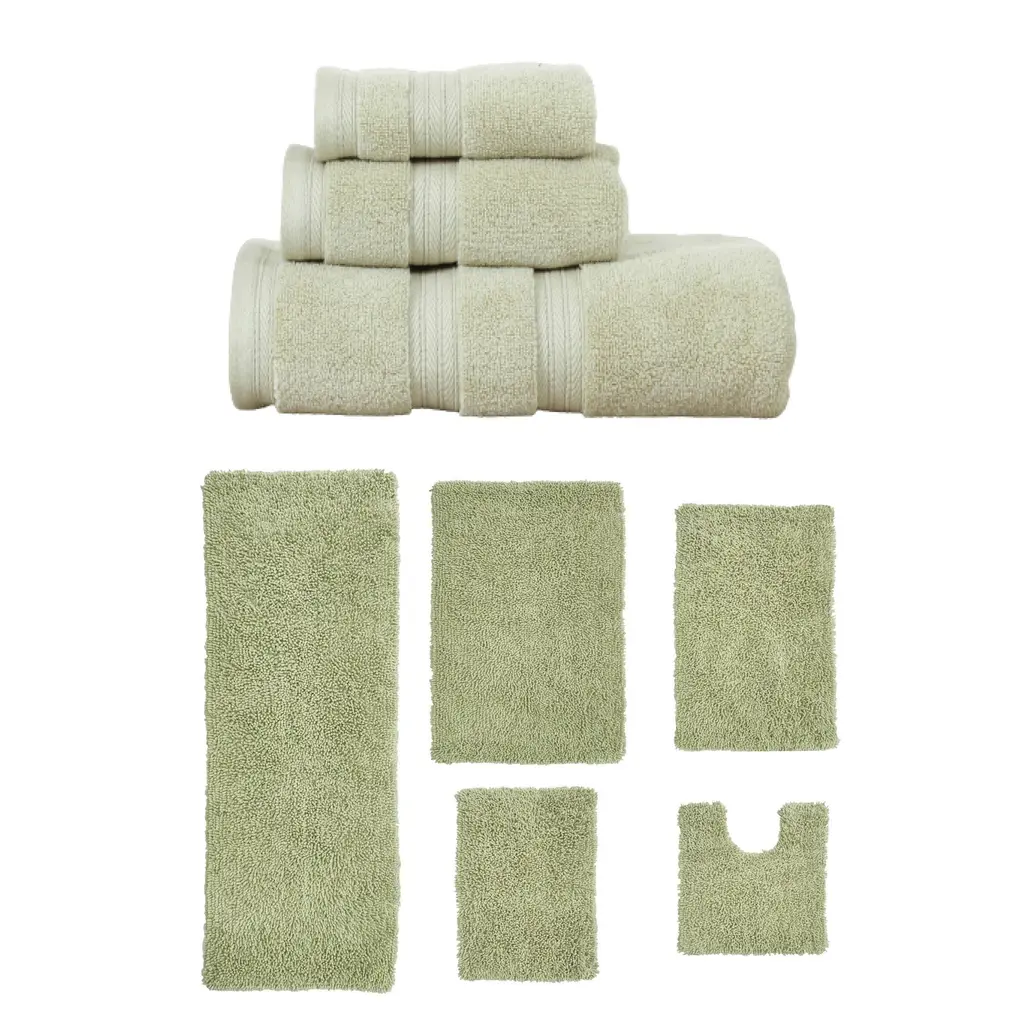 Transform your bathroom into a spa-like sanctuary with the Home Weavers 100% Soft Cotton Super Absorbent Bath Towels & Rugs Combo. Made from luxurious zero-twist cotton, these towels and rugs offer unmatched softness and absorbency while being gentle on the skin. The set includes a range of sizes, from plush bath towels to coordinating rugs, all designed to enhance your bathing experience. Each rug features a non-slip backing for safety and convenience, ensuring they stay securely in place. Plus, their machine-washable design makes for effortless maintenance. Elevate your daily routine with this premium combo that combines comfort, durability, and style. Set included: 3 Bath Rug (17"x24" + 21"x34" + 20"x20"), 1 Bath Towels (27"x54"), 1 Hand Towels (16"x24") and 1 Wash Cloths (13"x13") Premium Quality: Each piece is crafted with care using 100% cotton for superior comfort and durability. Elegant Design: Enhance your bathroom aesthetic with a choice of sophisticated colors and a tufted & Non Slip bath rug that adds texture and warmth. Practical Comfort: Enjoy the soft, plush feel of the bath rug and the absorbency of the towel set, designed to meet your daily bathing needs. Washing Instructions : Machine-washable design makes for effortless maintenance.