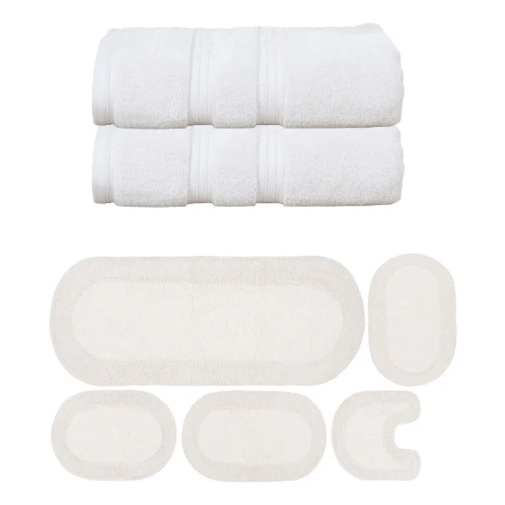 Transform Your Bath Experience with Home Weavers Luxury Collection Bath Rug and Elegance Essential Towel Set Upgrade your bathroom with the luxurious Home Weavers Luxury Collection, featuring a 100% cotton tufted bath rug and the Elegance Essential towel set. Home Weavers Luxury Collection Bath Rug (17"x24") Crafted from 100% cotton, this tufted bath rug combines plush comfort with durability. Its absorbent construction ensures quick drying, while the tufted texture provides a soft cushion underfoot. Available in a range of elegant colors to complement any bathroom décor. Elegance Essential Towel 2 Pcs Set (27"x54") Wrap yourself in luxury with the Elegance Essential towel set, made from high-quality cotton for exceptional softness and absorbency. This set includes generously sized bath towels perfect for daily use. Available in classic colors that effortlessly elevate your bathroom style.