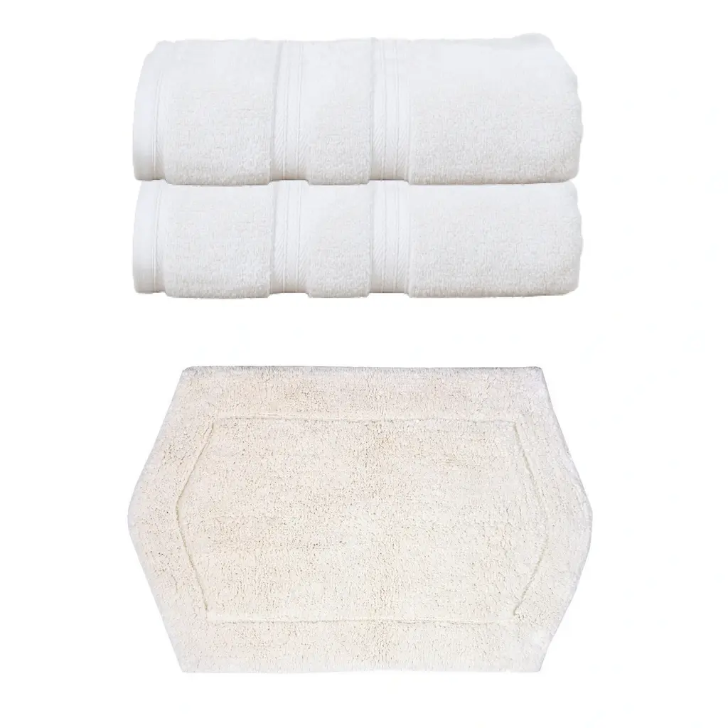 Home Weavers Luxury Collection 100% Soft Cotton 2 Pc Bath Towel Set & 1 Pc 17x24" Bath Rug, Machine Wash & Non Slip (Set Of 3) - White - 17"x24" + 27"x54"(2)