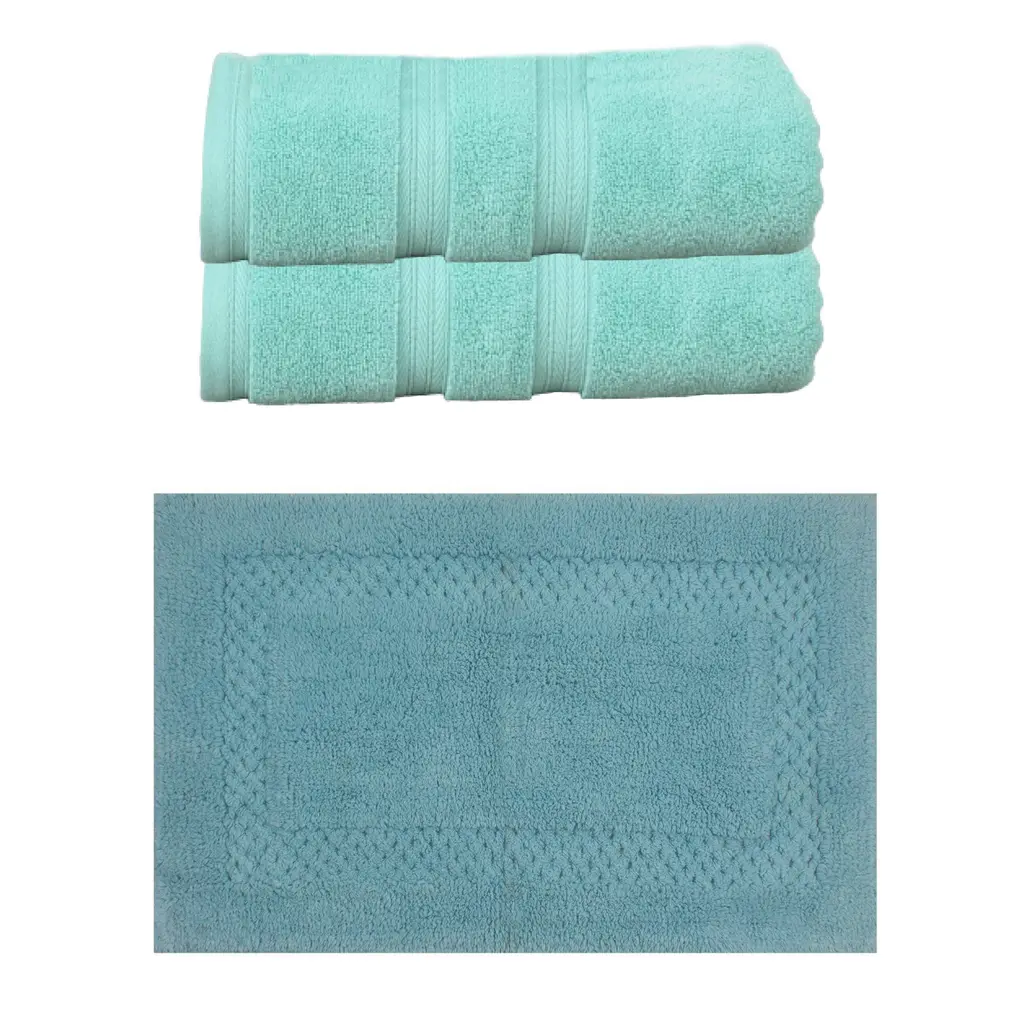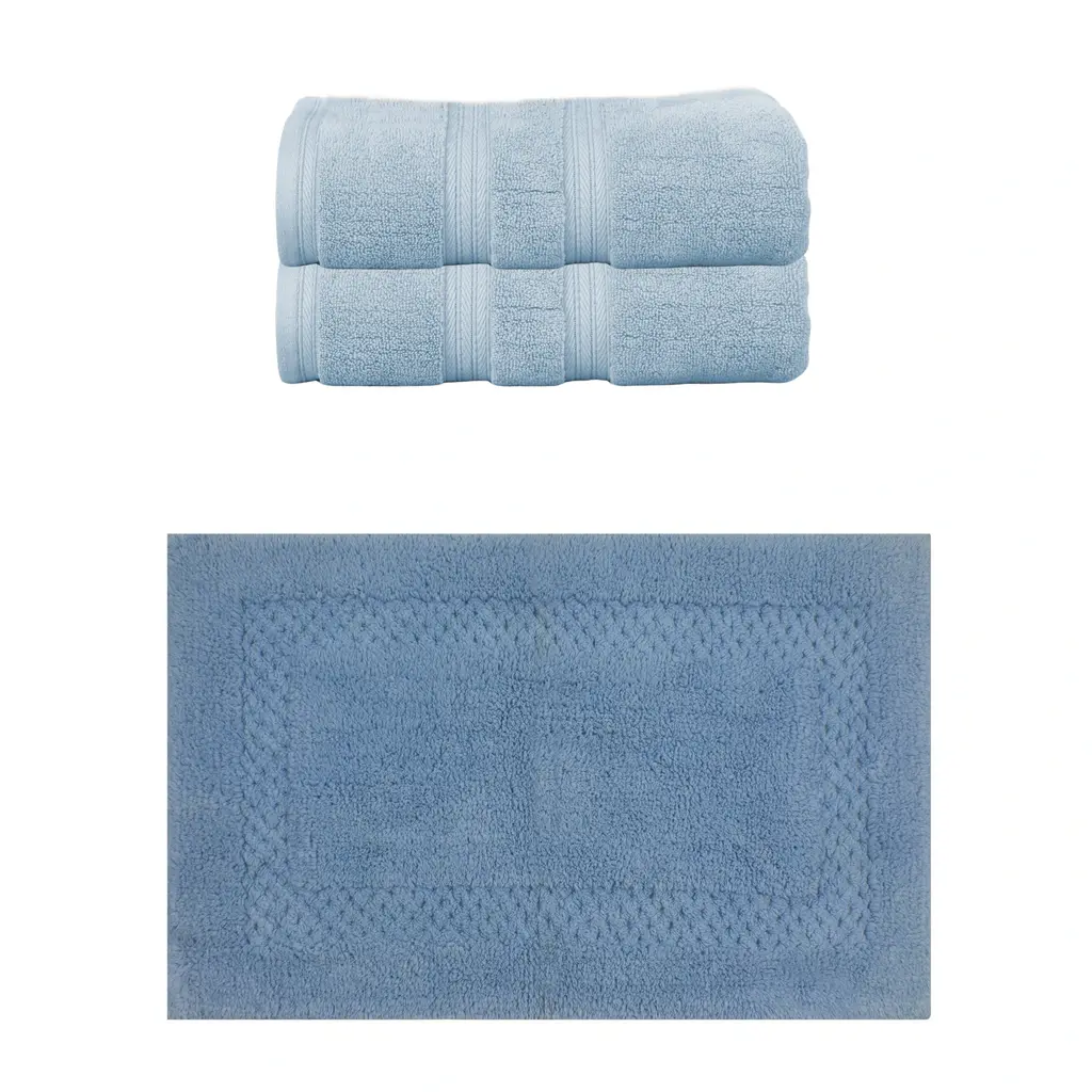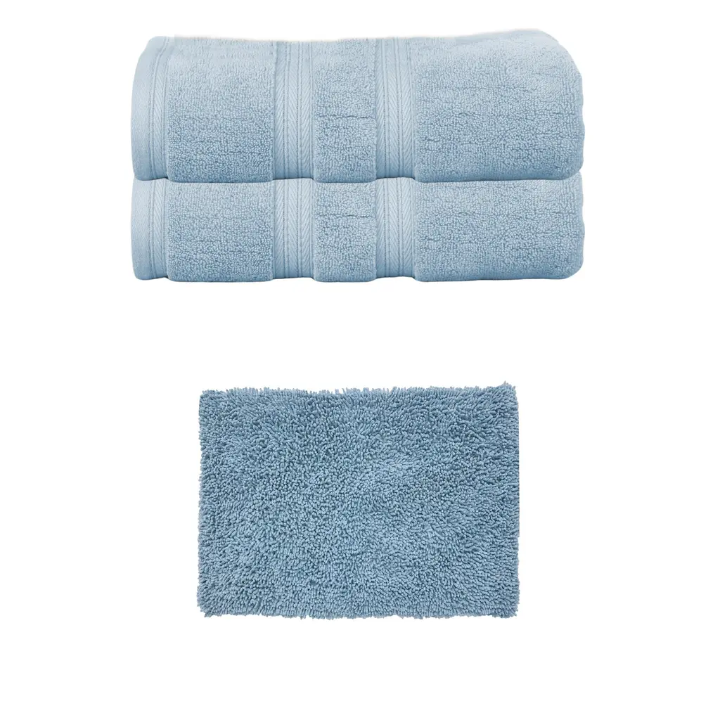 Home Weavers Luxury Collection 100% Soft Cotton 2 Pc Bath Towel Set & 1 Pc 21x34" Bath Rug, Machine Wash & Non Slip (Set Of 3) - Blue - 21"x34" + 27"x54"(2)