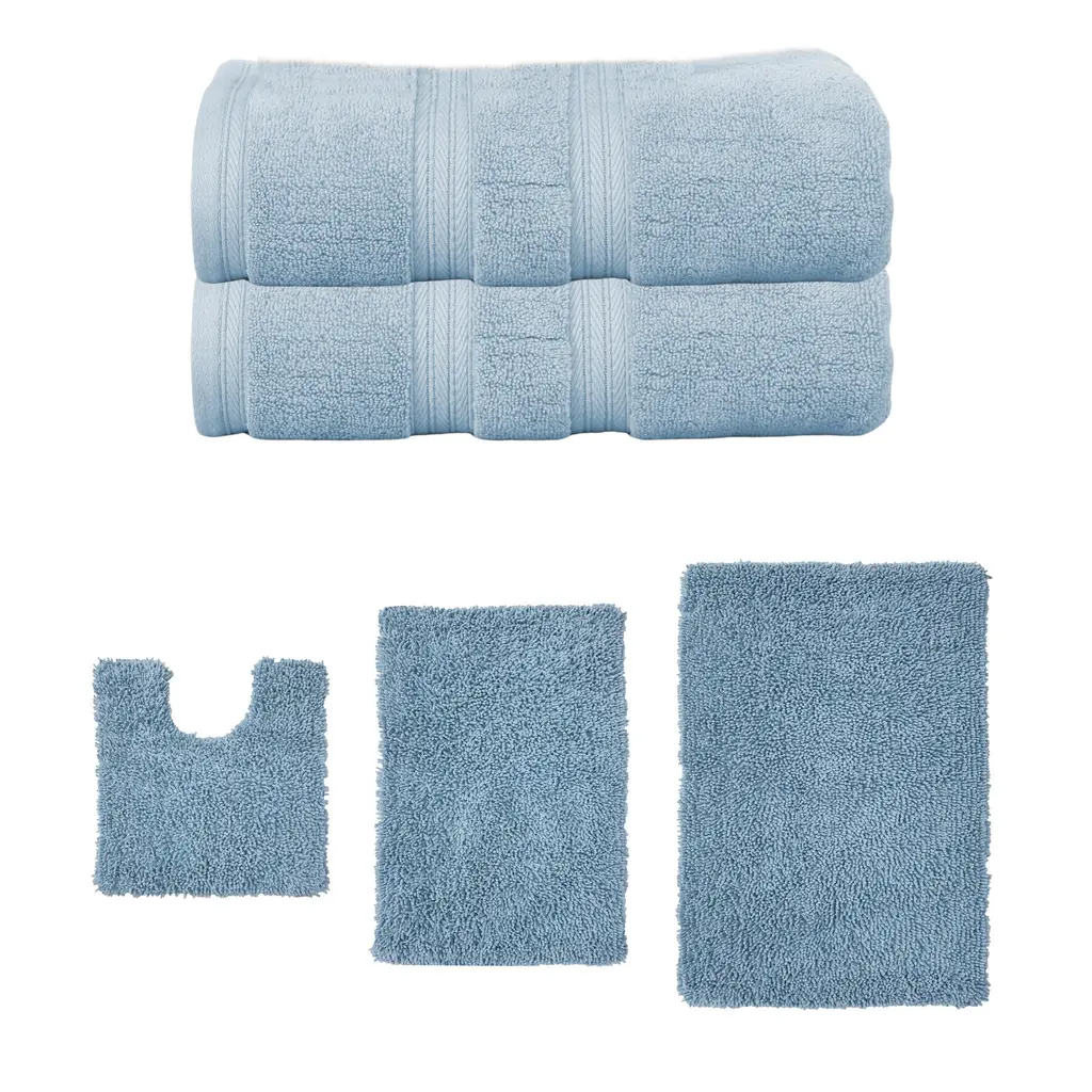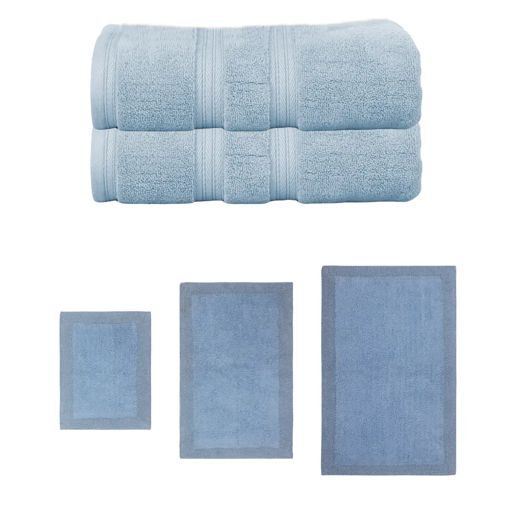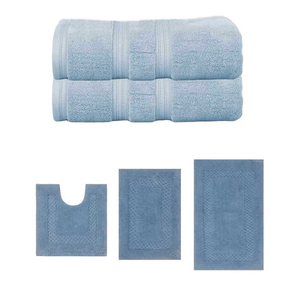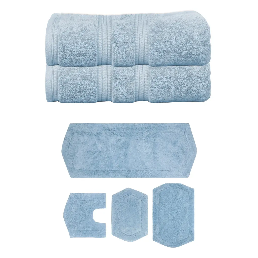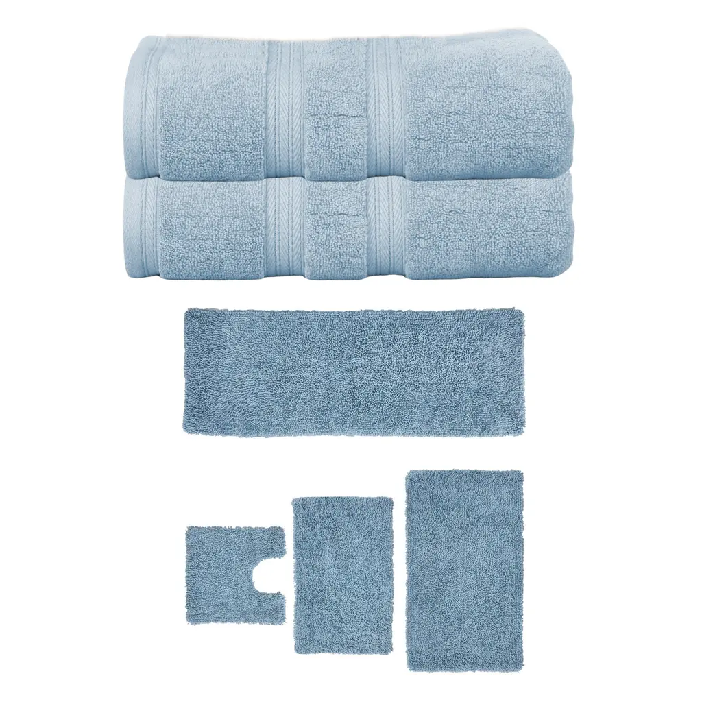 Home Weavers Luxury Collection 100% Soft Cotton Super Absorbent 2 Pc Bath Towel Set & 5 Pc Bath Rug Set, Machine Wash (Set Of 7) - 5 Pc Bath Rug + 2 Pc Bath Towel Set - Blue