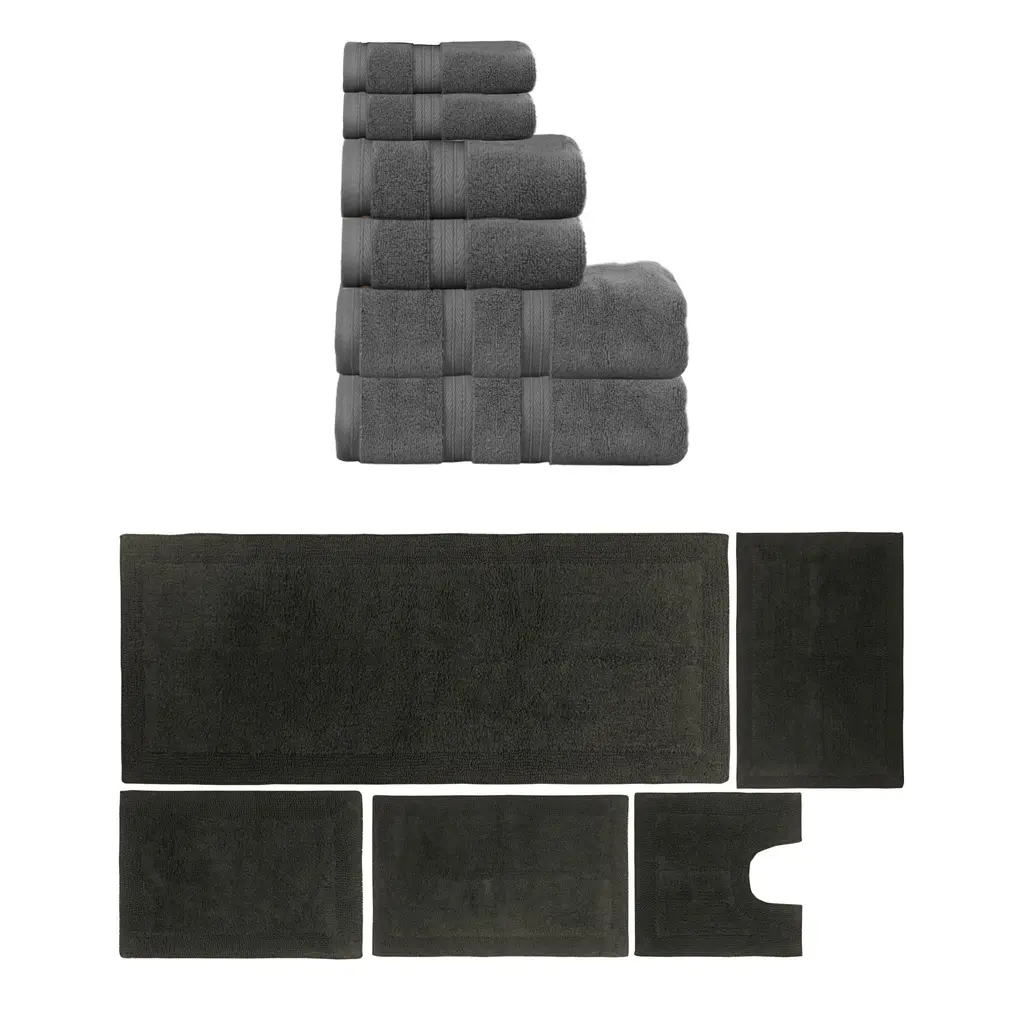 Home Weavers Luxury Collection 100% Soft Cotton Super Absorbent 3 Pc Towel Set & 5 Pc Bath Rug Set, Machine Wash (Set Of 8) - 5 Pc Bath Rug + 3 Pc Towel Set - Dark Gray
