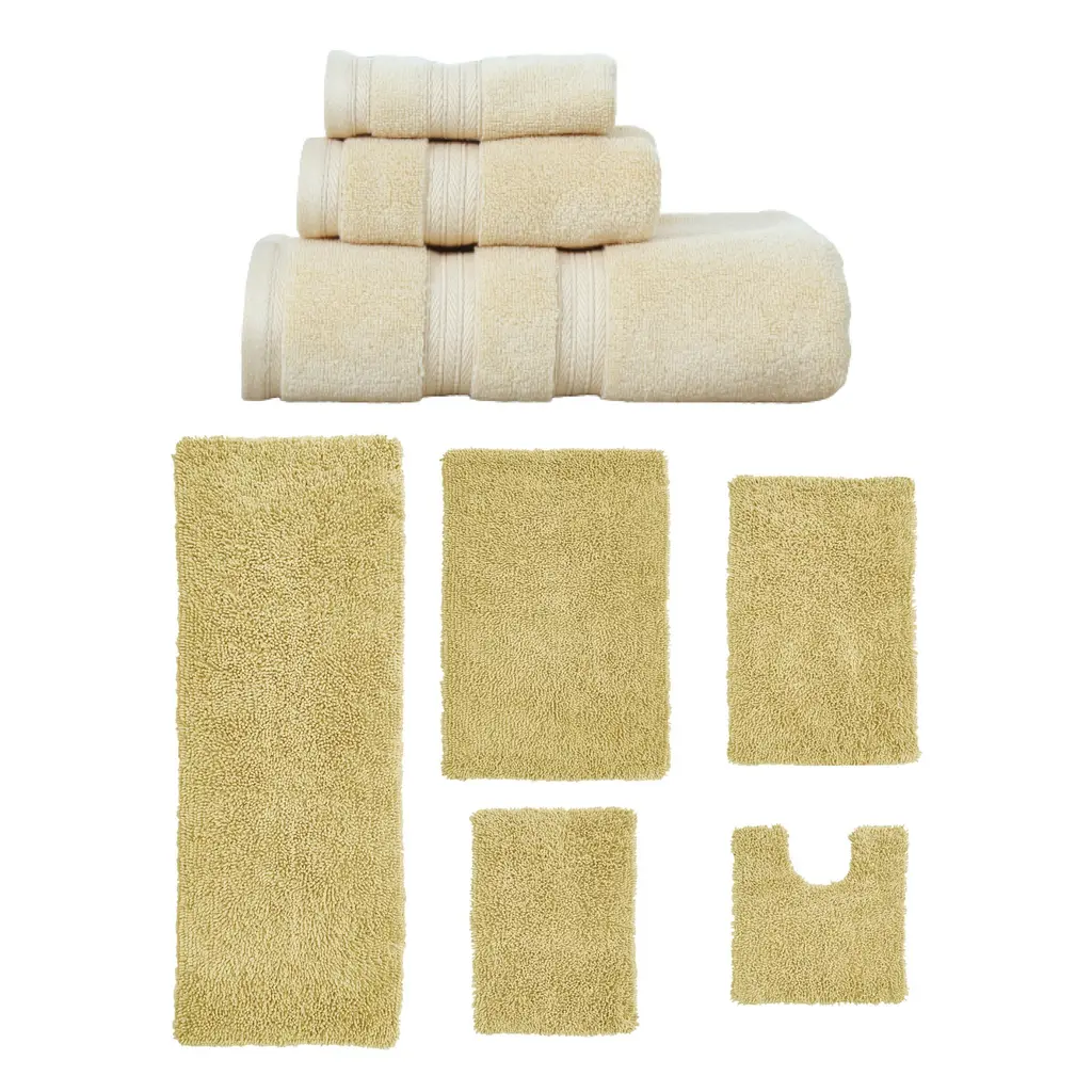 Home Weavers Luxury Collection 100% Soft Cotton Super Absorbent 3 Pc Towel Set & 5 Pc Bath Rug Set, Machine Wash (Set Of 8) - 5 Pc Bath Rug + 3 Pc Towel Set - Linen