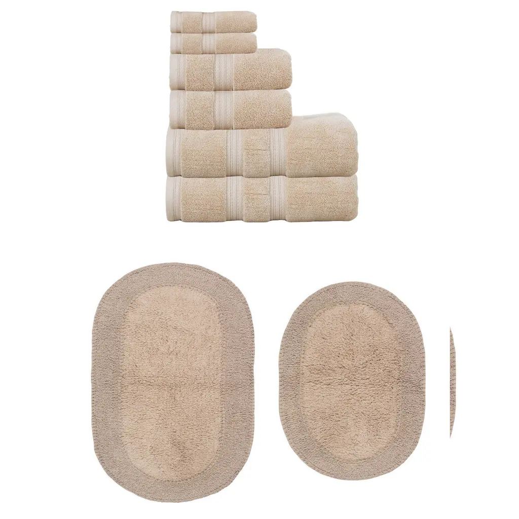 Home Weavers Luxury Collection 100% Soft Cotton Super Absorbent 6 Pc Towel Set & 2 Pc Bath Rug Set, Machine Wash (Set Of 8) - Linen - 2 Pc Bath Rug + 6 Pc Towel Set