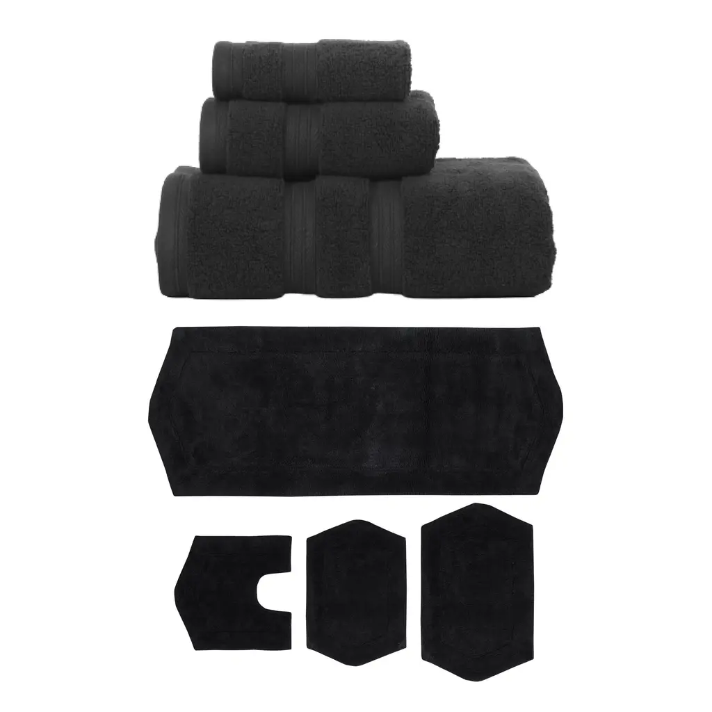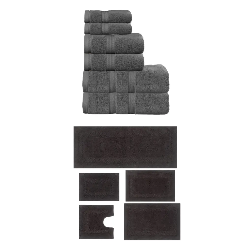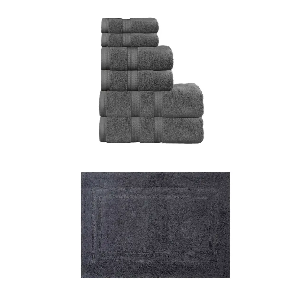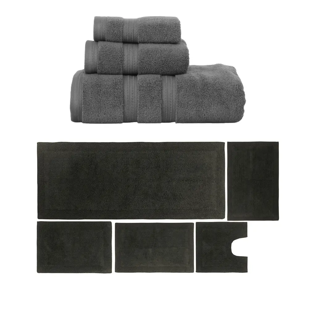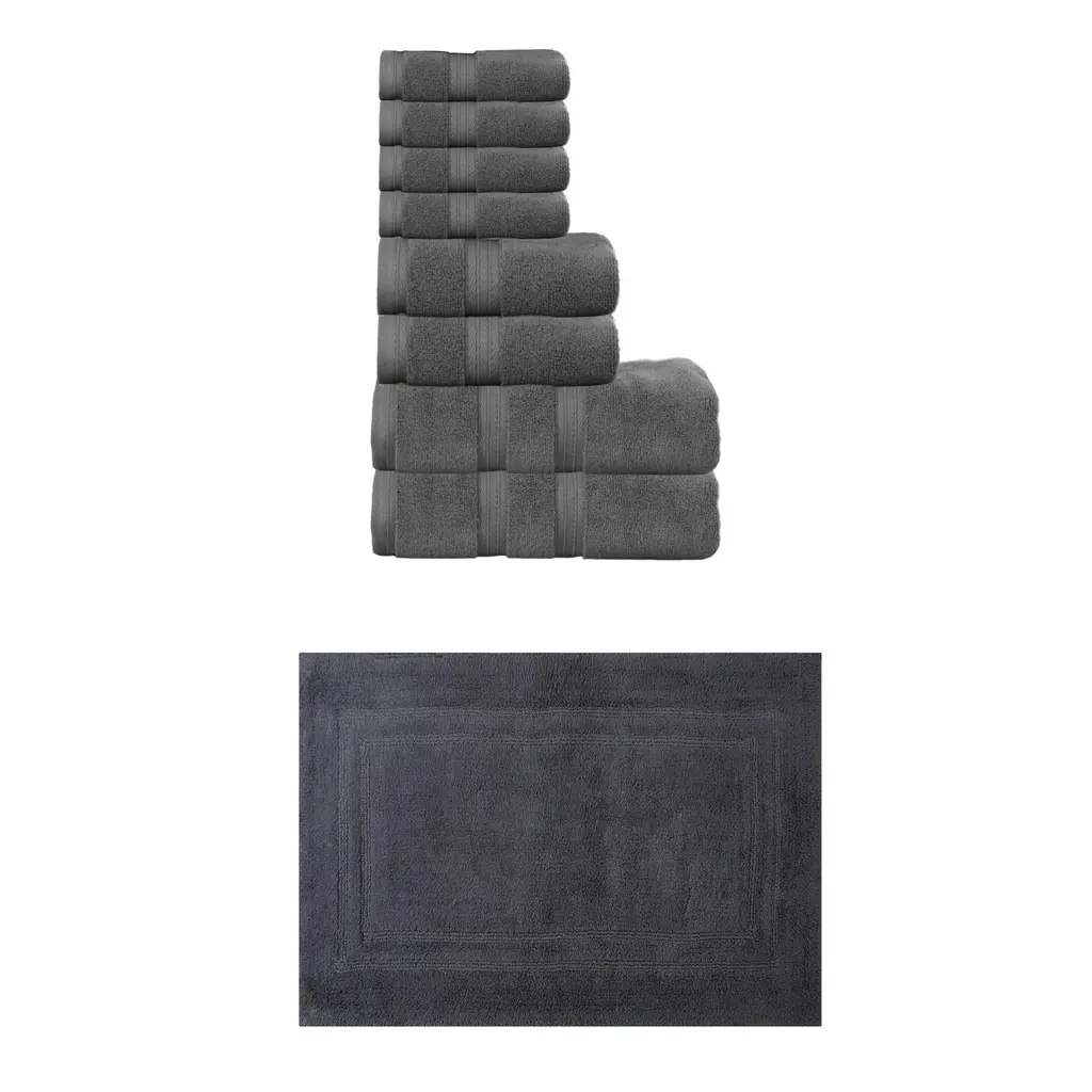 Transform your bathroom into a spa-like sanctuary with the Home Weavers 100% Soft Cotton Super Absorbent Bath Towels & Rugs Combo. Made from luxurious zero-twist cotton, these towels and rugs offer unmatched softness and absorbency while being gentle on the skin. The set includes a range of sizes, from plush bath towels to coordinating rugs, all designed to enhance your bathing experience. Each rug features a non-slip backing for safety and convenience, ensuring they stay securely in place. Plus, their machine-washable design makes for effortless maintenance. Elevate your daily routine with this premium combo that combines comfort, durability, and style. Set included: 4 Bath Rug (17"x24" + 21"x34" + 20"x20" + 22"x60"), 2 Bath Towels (27"x54"), 2 Hand Towels (16"x24"), and 2 Wash Cloths (13"x13") Premium Quality: Each piece is crafted with care using 100% cotton for superior comfort and durability. Elegant Design: Enhance your bathroom aesthetic with a choice of sophisticated colors and a tufted & Non Slip bath rug that adds texture and warmth. Practical Comfort: Enjoy the soft, plush feel of the bath rug and the absorbency of the towel set, designed to meet your daily bathing needs. Washing Instructions : Machine-washable design makes for effortless maintenance.