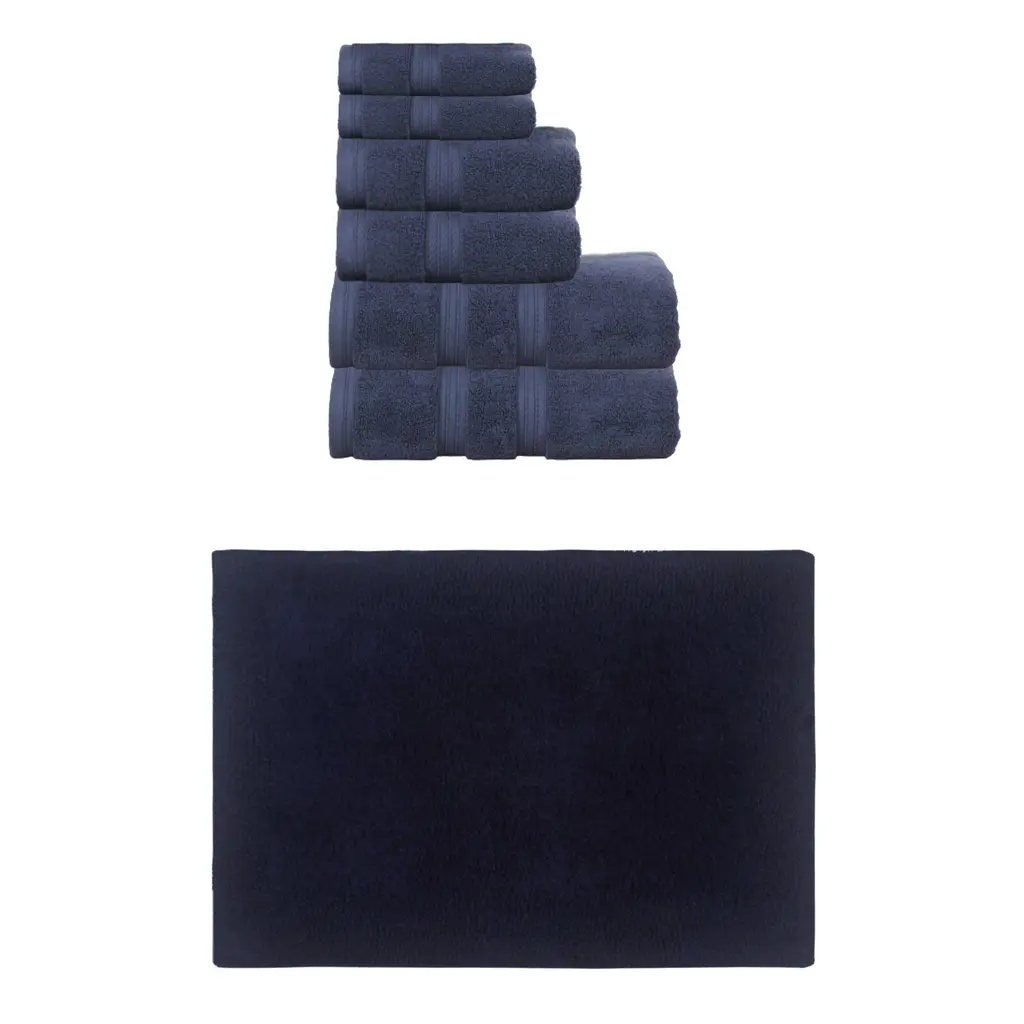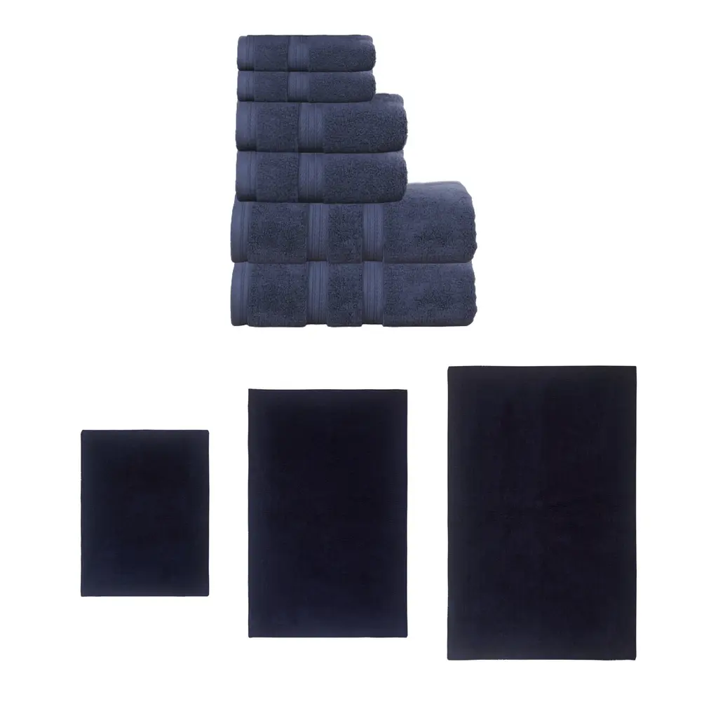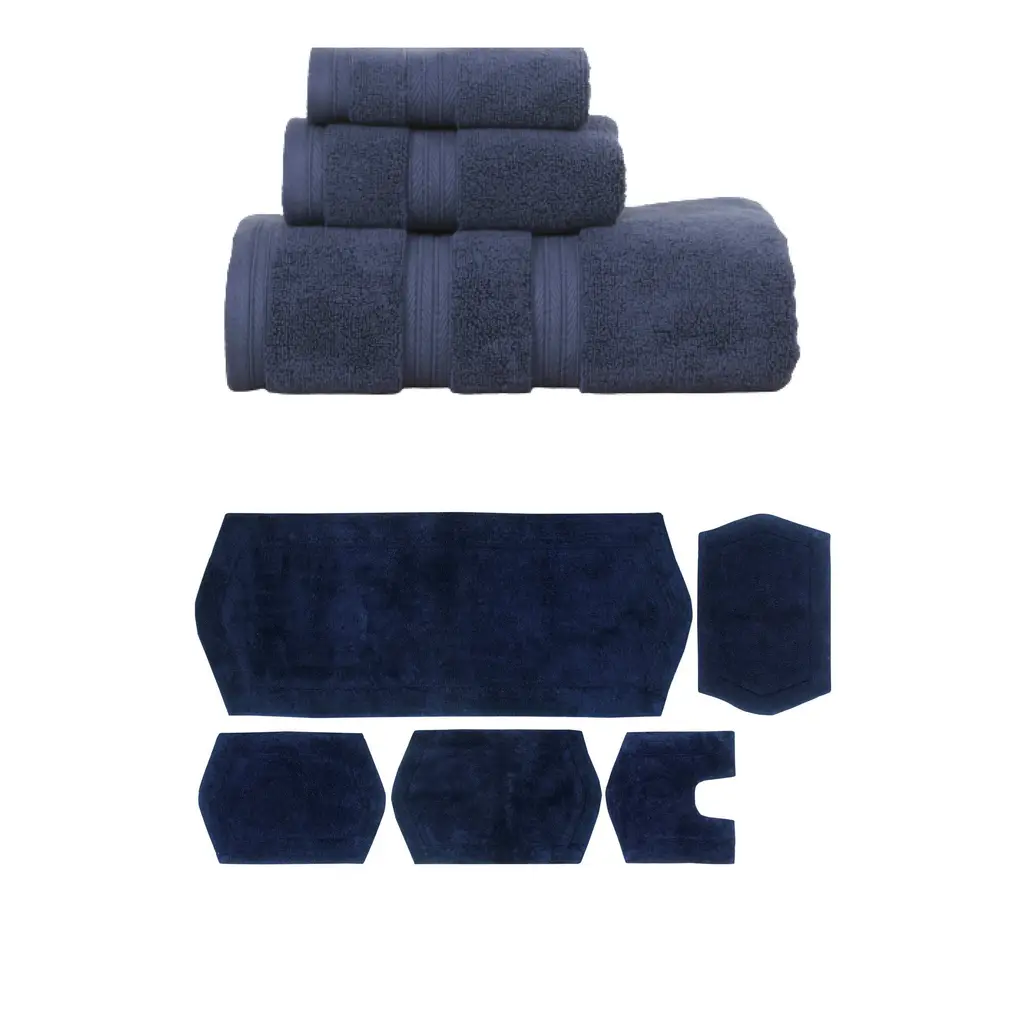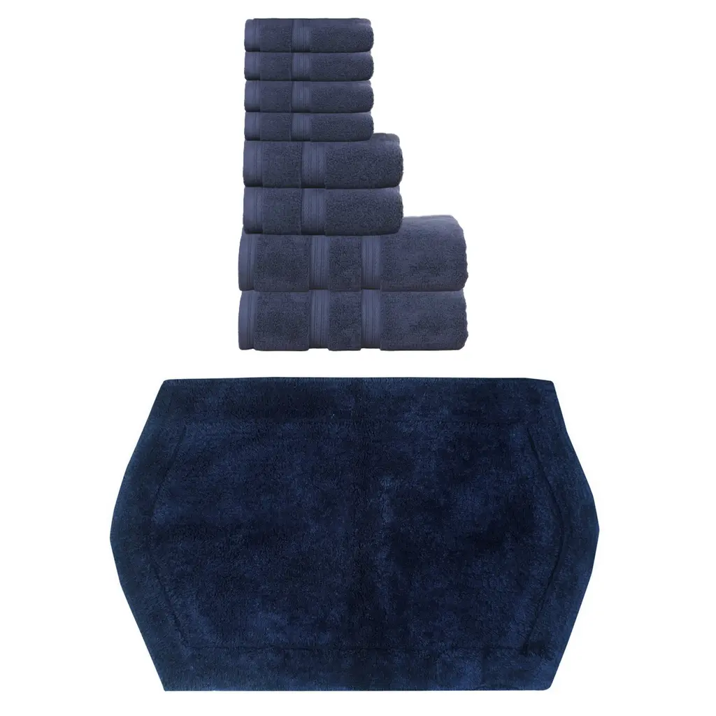 Home Weavers Luxury Collection 100% Soft Cotton Super Absorbent 6 Pc Towel Set & 4 Pc Bath Rug Set, Machine Wash (Set Of 10) - Navy - 4 Pc Bath Rug + 6 Pc Towel Set
