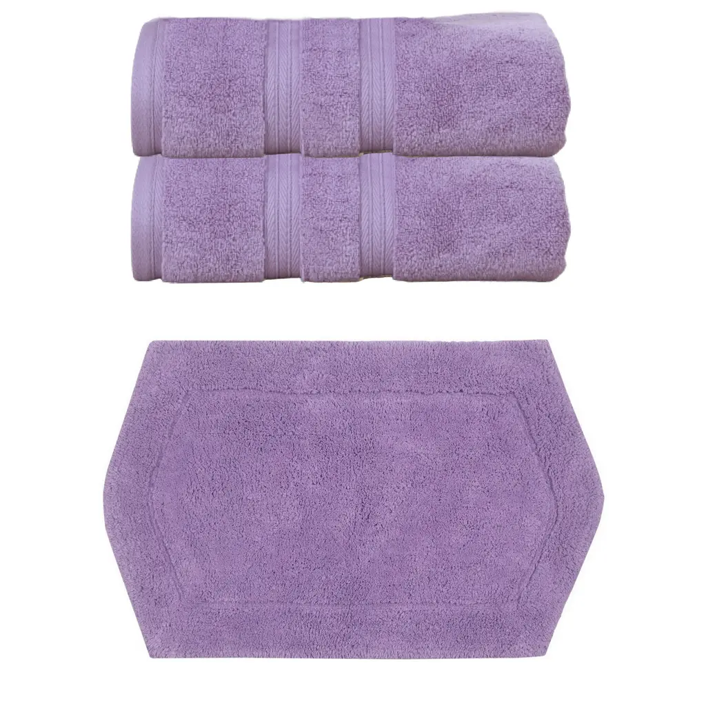 Home Weavers Waterford Collection 100% Soft Cotton 2 Pc Bath Towel Set & 1 Pc Bath Rug, Machine Washable & Non Slip (Set Of 3) - Purple - 24"x40" + 27"x54"(2)