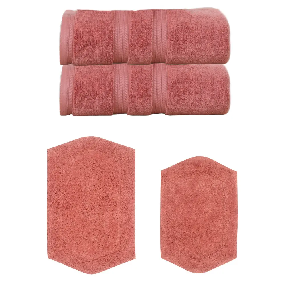 Home Weavers Waterford Collection 100% Soft Cotton 6 Pc Towel Set & 1 Pc Bath Rug, Machine Washable & Non Slip (Set Of 7) - Coral - 24"x40" + 27"x54"(2) + 16"x24"(2) + 13"x13"(2)