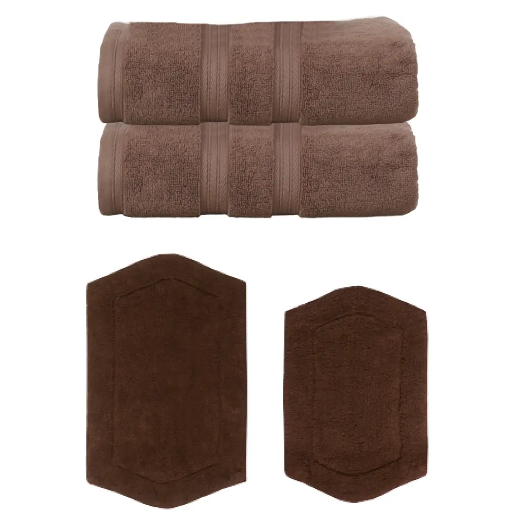 Home Weavers Waterford Collection 100% Soft Cotton Super Absorbent 2 Pc Bath Towel Set & 5 Pc Bath Rug Combo, (Set Of 7) - 5 Pc Bath Rug + 2 Pc Bath Towel Set - Chocolate