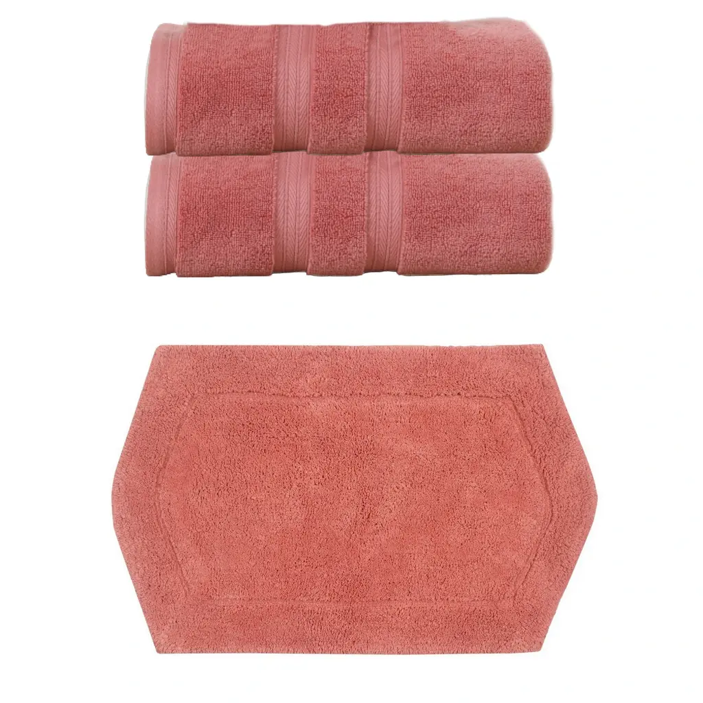 Home Weavers Waterford Collection 100% Soft Cotton Super Absorbent 2 Pc Bath Towel Set & 5 Pc Bath Rug Combo, (Set Of 7) - 5 Pc Bath Rug + 2 Pc Bath Towel Set - Coral