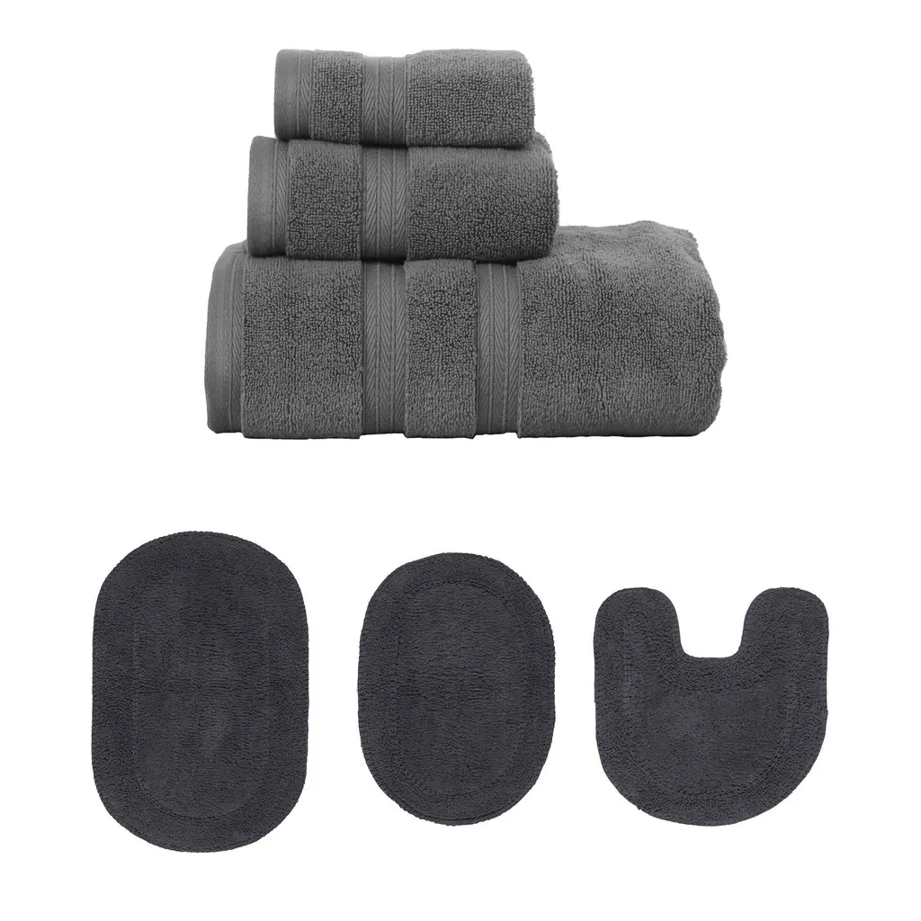 Home Weavers Waterford Collection 100% Soft Cotton Super Absorbent 3 Pc Towel Set & 2 Pc Bath Rug Combo, Non Slip (Set Of 5) - Black - 2 Pc Bath Rug + 3 Pc Towel Set