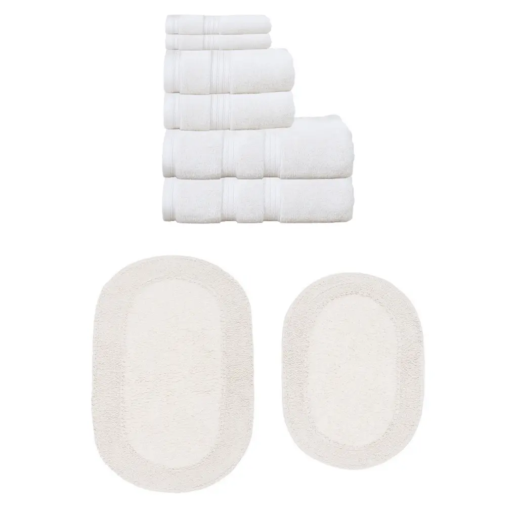 Home Weavers Waterford Collection 100% Soft Cotton Super Absorbent 3 Pc Towel Set & 4 Pc Bath Rug Combo, Non Slip (Set Of 7) - Ivory - 4 Pc Bath Rug + 3 Pc Towel Set