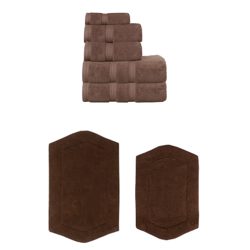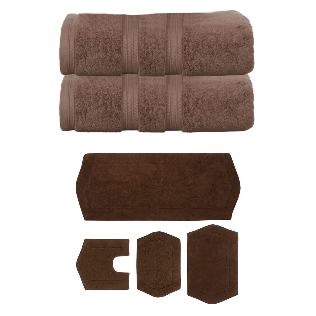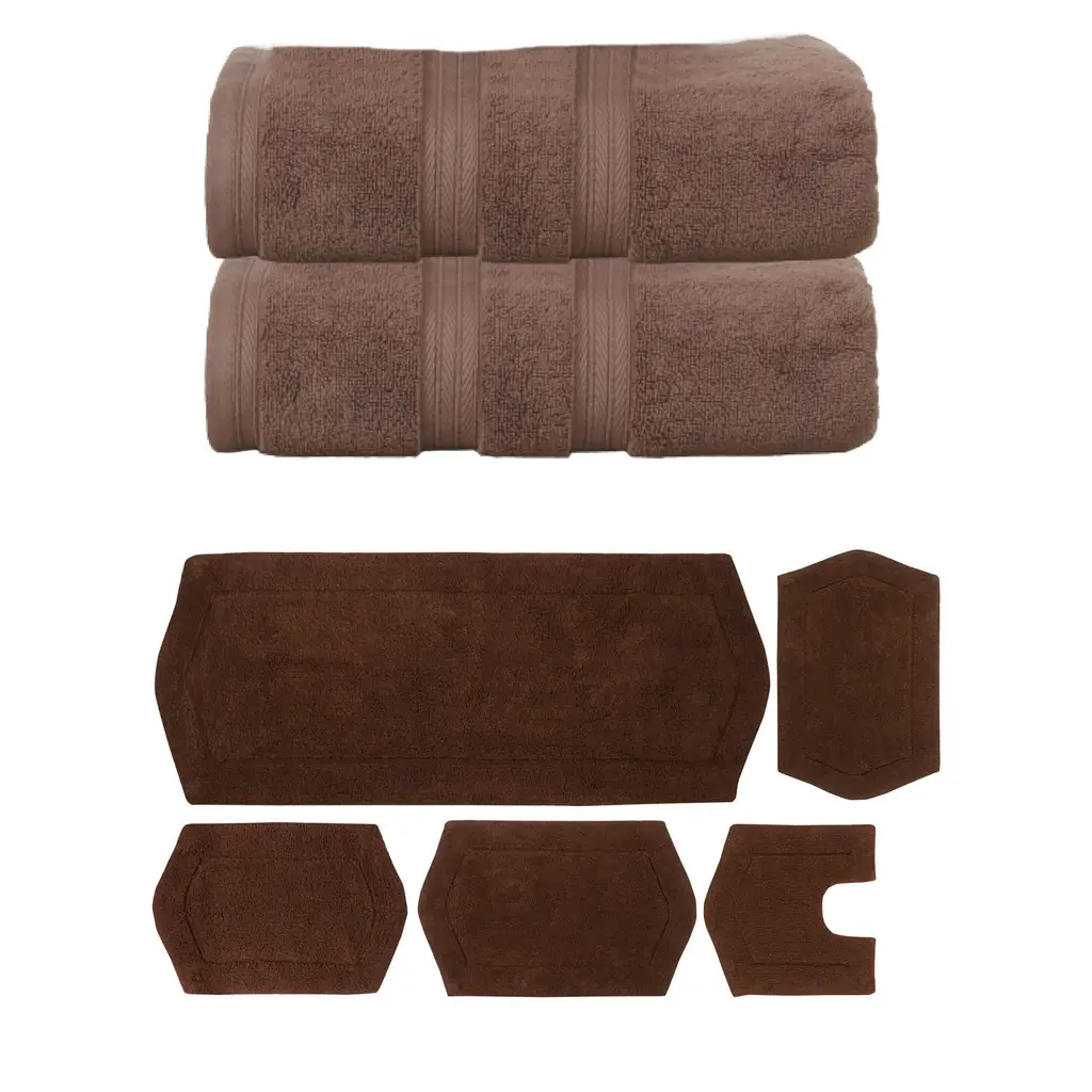 Home Weavers Waterford Collection 100% Soft Cotton Super Absorbent 3 Pc Towel Set & 5 Pc Bath Rug Combo, Non Slip (Set Of 8) - 5 Pc Bath Rug + 3 Pc Towel Set - Chocolate