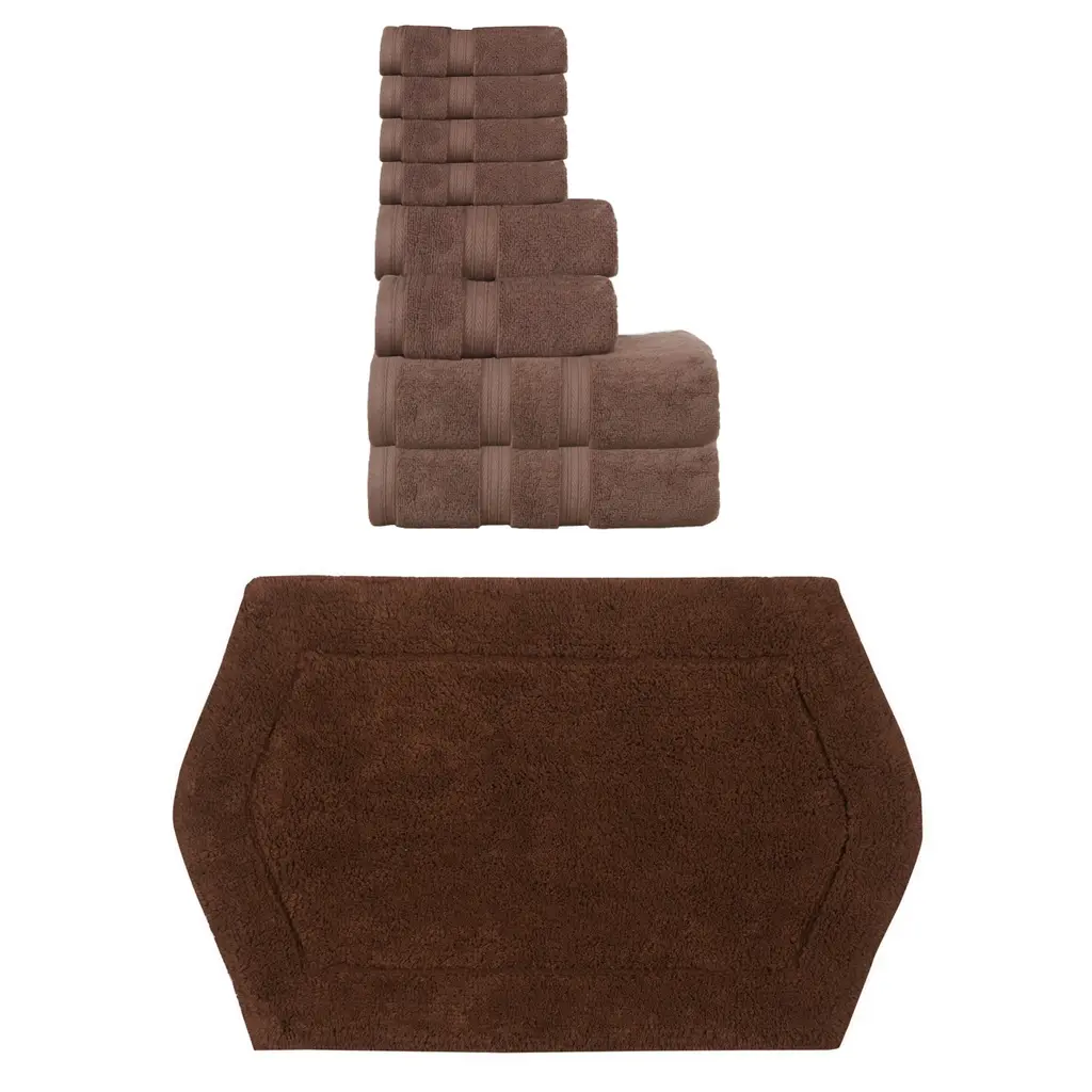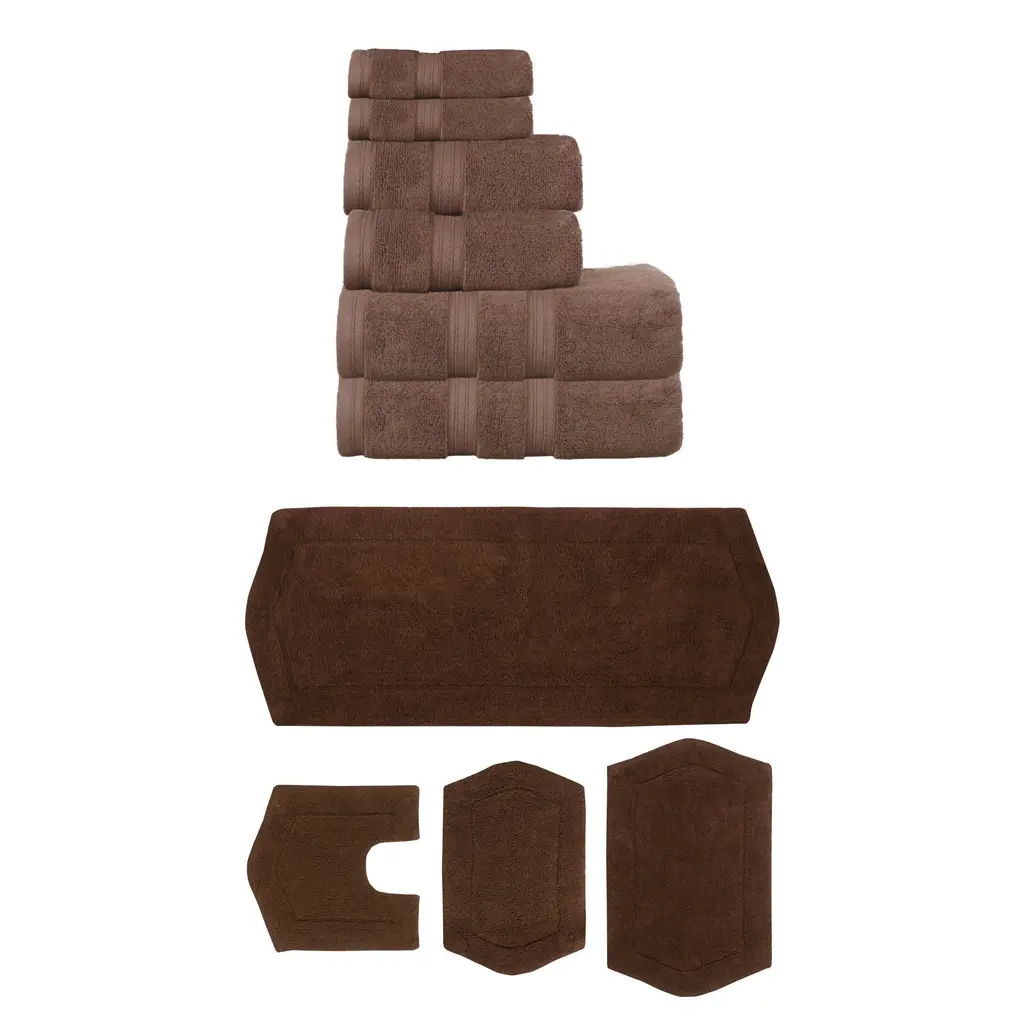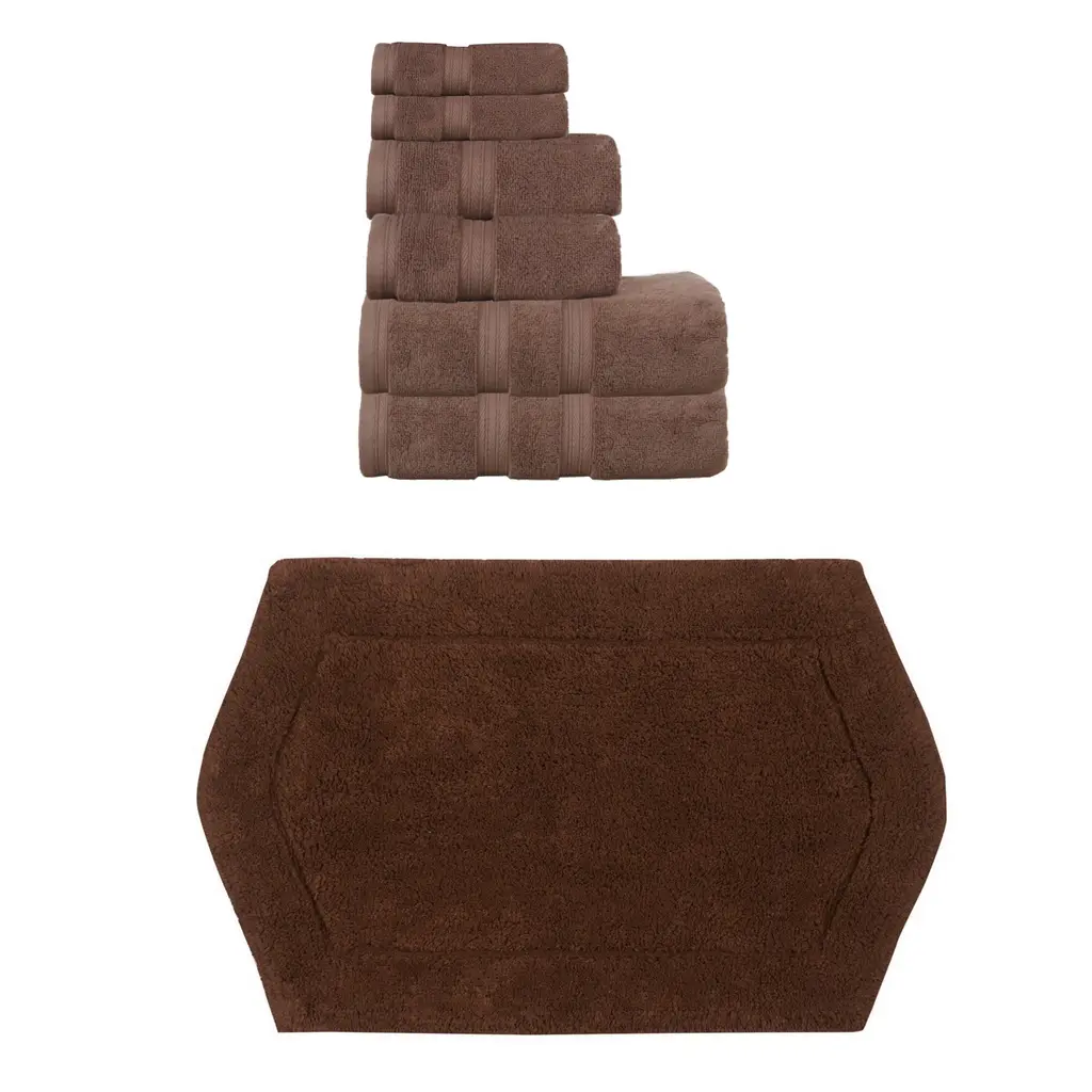 Home Weavers Waterford Collection 100% Soft Cotton Super Absorbent 3 Pc Towel Set & 5 Pc Bath Rug Combo, Non Slip (Set Of 8) - 5 Pc Bath Rug + 3 Pc Towel Set - Chocolate
