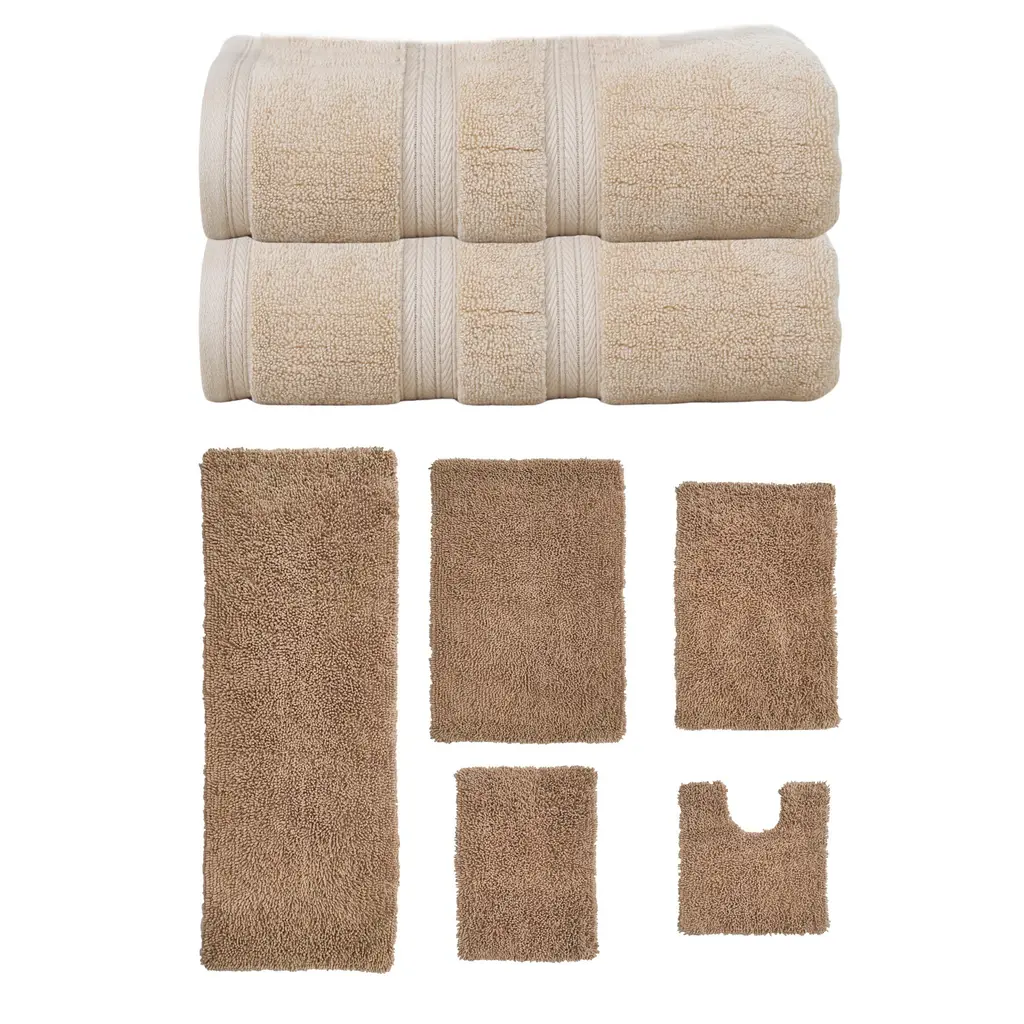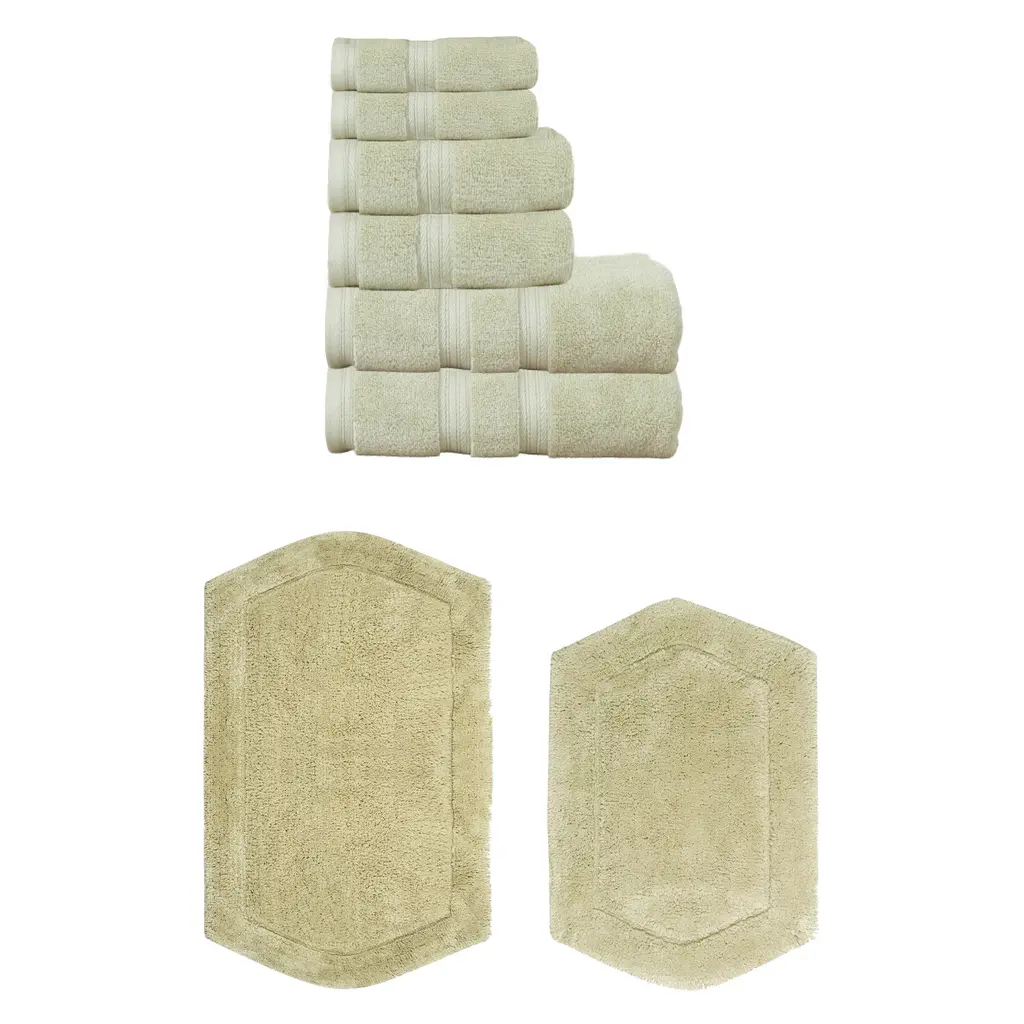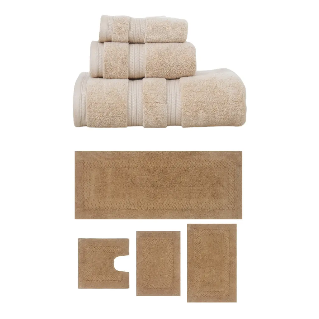 Home Weavers Waterford Collection 100% Soft Cotton Super Absorbent 3 Pc Towel Set & 5 Pc Bath Rug Combo, Non Slip (Set Of 8) - 5 Pc Bath Rug + 3 Pc Towel Set - Linen