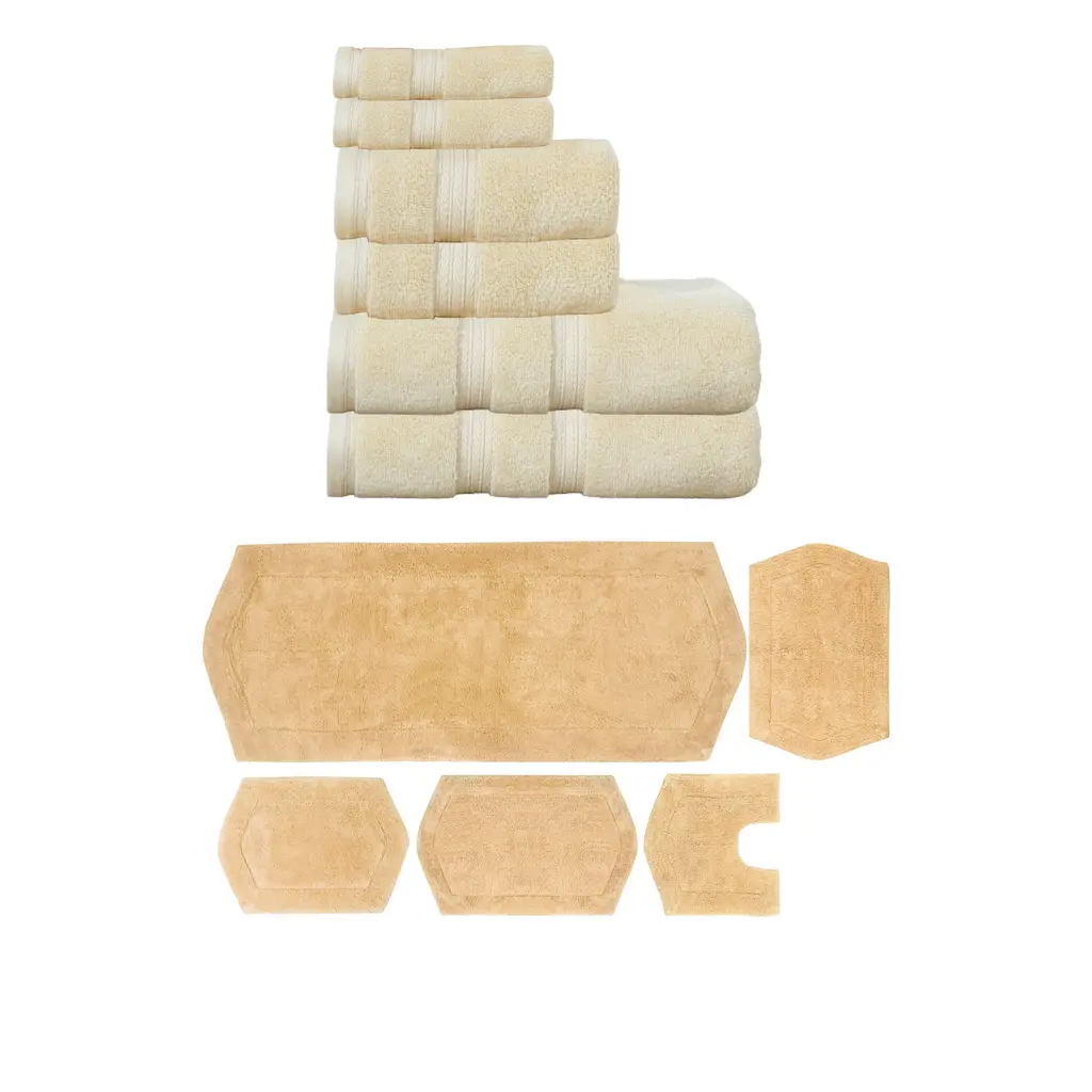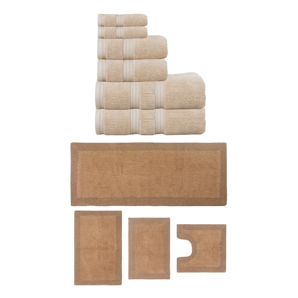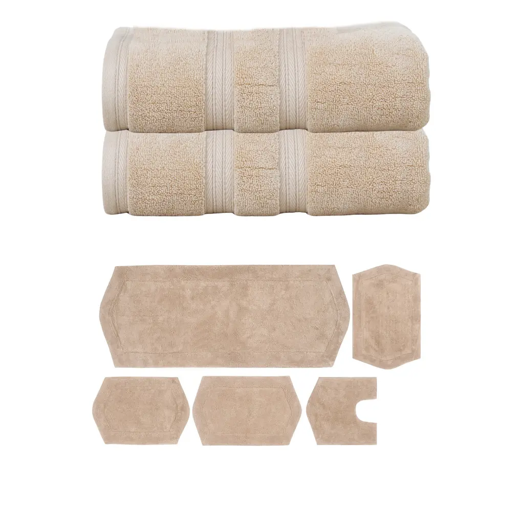 Home Weavers Waterford Collection 100% Soft Cotton Super Absorbent 3 Pc Towel Set & 5 Pc Bath Rug Combo, Non Slip (Set Of 8) - 5 Pc Bath Rug + 3 Pc Towel Set - Linen