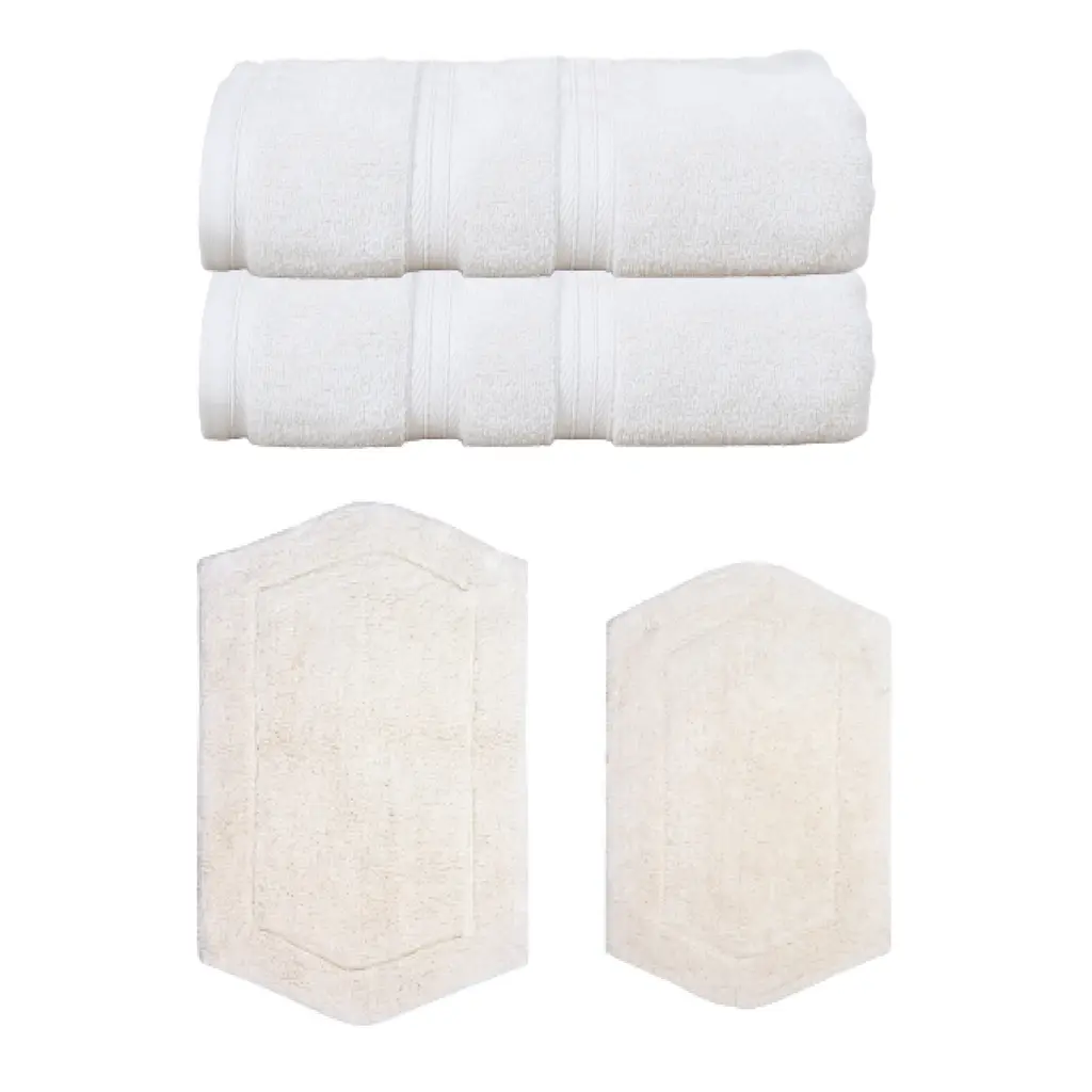 Home Weavers Waterford Collection 100% Soft Cotton Super Absorbent 6 Pc Towel Set & 2 Pc Bath Rug Combo, Non Slip (Set Of 8) - Ivory - 2 Pc Bath Rug + 6 Pc Towel Set