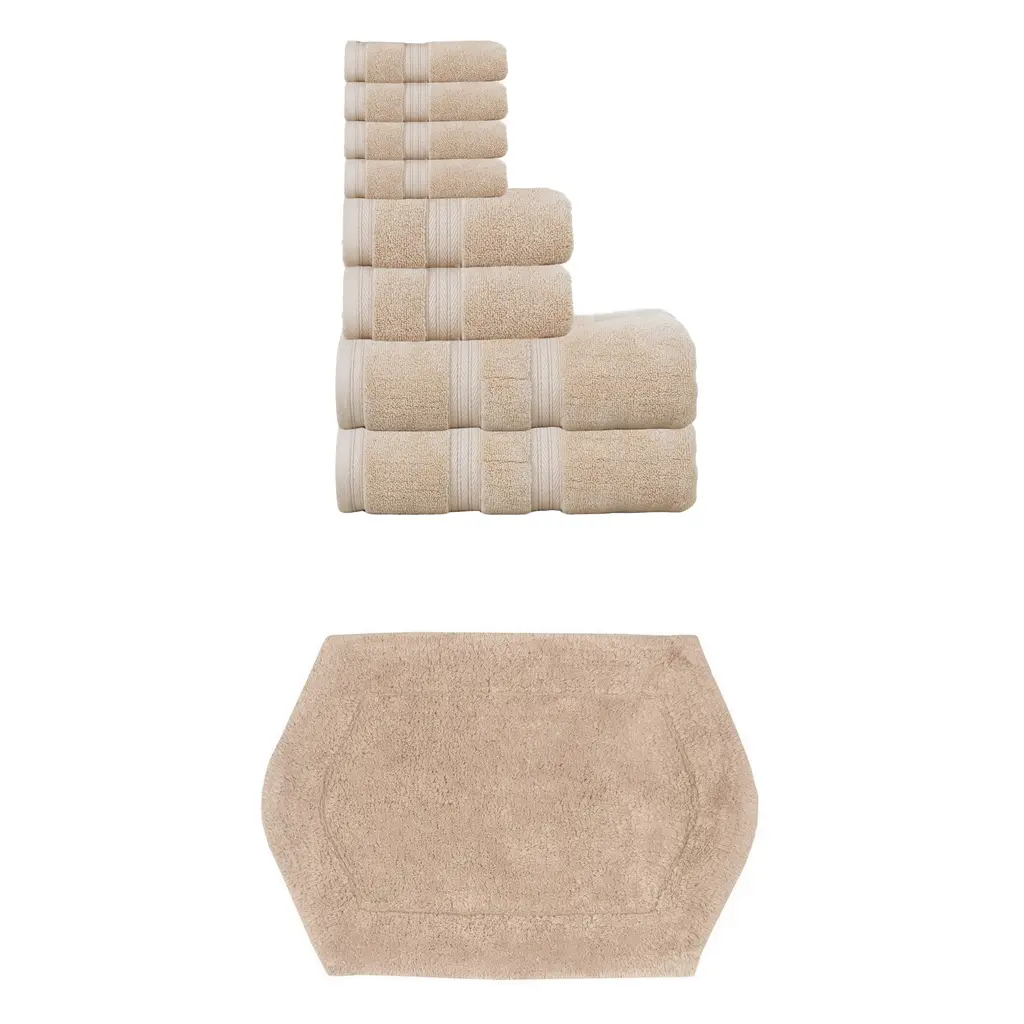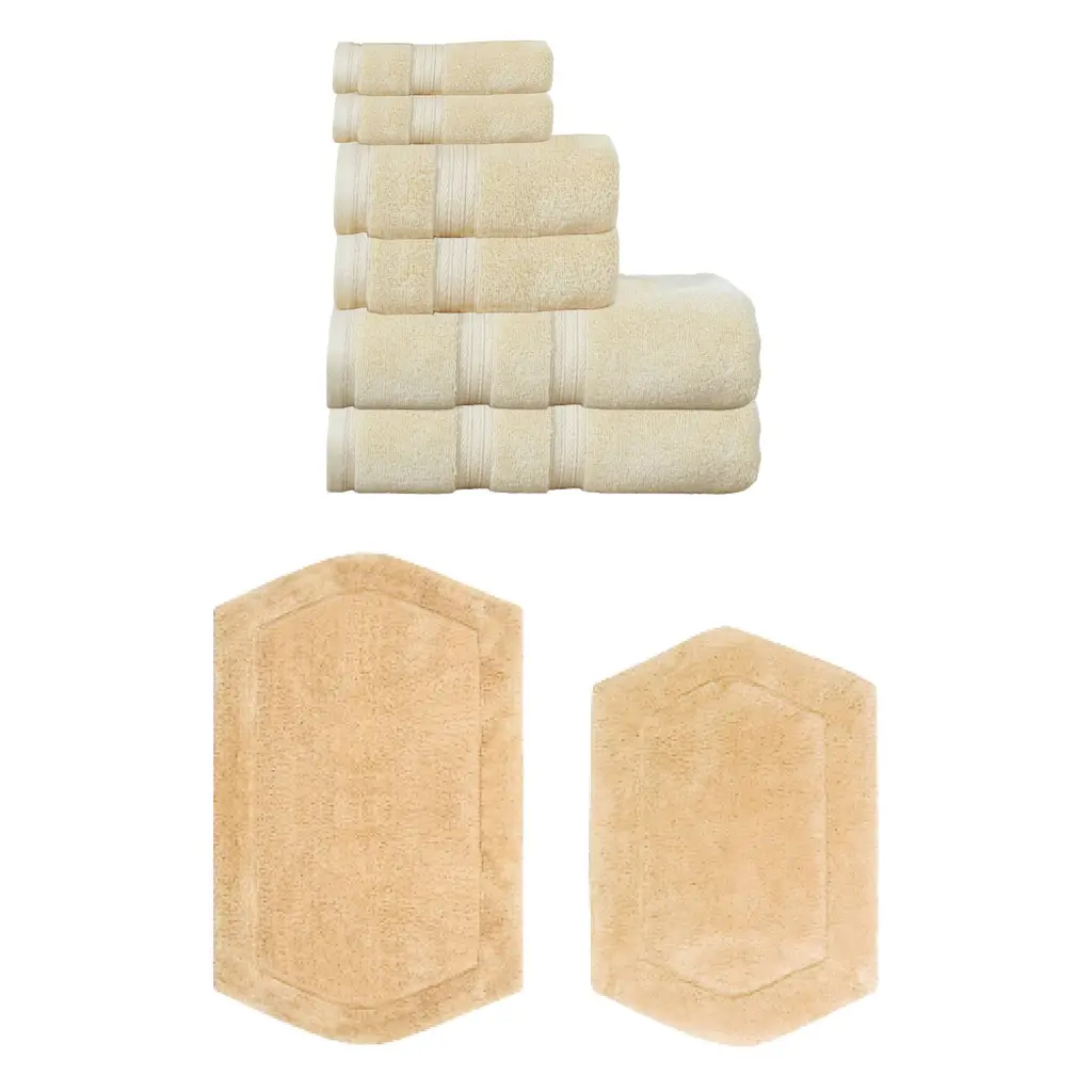 Home Weavers Waterford Collection 100% Soft Cotton Super Absorbent 6 Pc Towel Set & 2 Pc Bath Rug Combo, Non Slip (Set Of 8) - Linen - 2 Pc Bath Rug + 6 Pc Towel Set