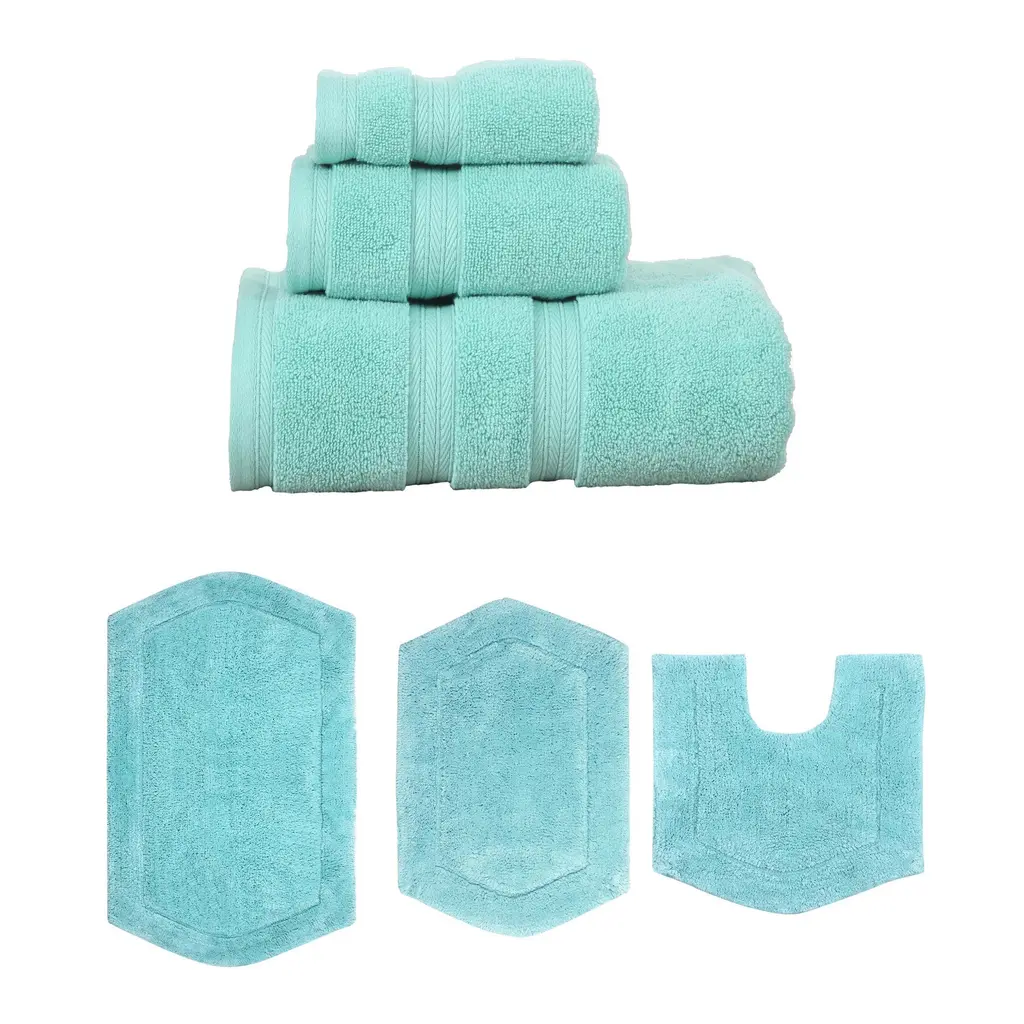 Transform your bathroom into a spa-like sanctuary with the Home Weavers 100% Soft Cotton Super Absorbent Bath Towels & Rugs Combo. Made from luxurious zero-twist cotton, these towels and rugs offer unmatched softness and absorbency while being gentle on the skin. The set includes a range of sizes, from plush bath towels to coordinating rugs, all designed to enhance your bathing experience. Each rug features a non-slip backing for safety and convenience, ensuring they stay securely in place. Plus, their machine-washable design makes for effortless maintenance. Elevate your daily routine with this premium combo that combines comfort, durability, and style. Set included: 3 Bath Rug (17"x24" + 21"x34" + 20"+20"), 2 Bath Towels (27"x54"), 2 Hand Towels (16"x24"), and 2 Wash Cloths (13"x13") Premium Quality: Each piece is crafted with care using 100% cotton for superior comfort and durability. Elegant Design: Enhance your bathroom aesthetic with a choice of sophisticated colors and a tufted & Non Slip bath rug that adds texture and warmth. Practical Comfort: Enjoy the soft, plush feel of the bath rug and the absorbency of the towel set, designed to meet your daily bathing needs. Washing Instructions : Machine-washable design makes for effortless maintenance.