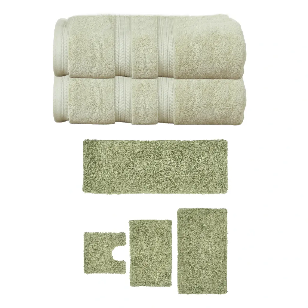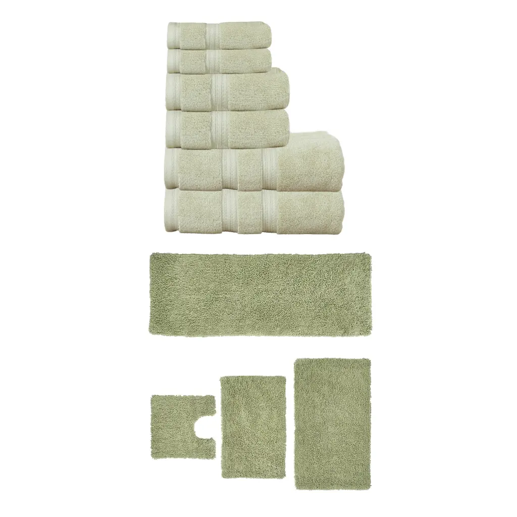Home Weavers Waterford Collection 100% Soft Cotton Super Absorbent 6 Pc Towel Set & 5 Pc Bath Rug Combo, Non Slip (Set Of 11) - 5 Pc Bath Rug + 6 Pc Towel Set - Green