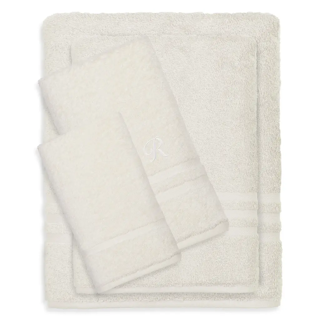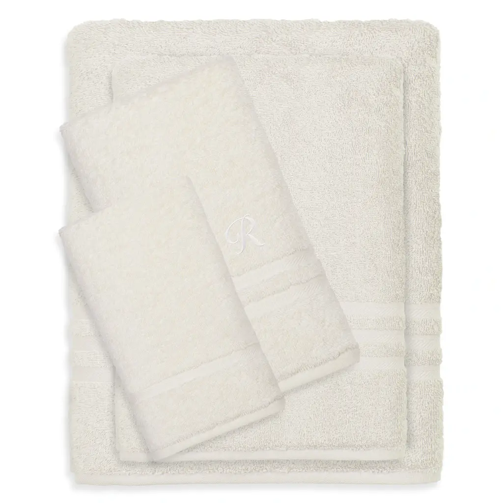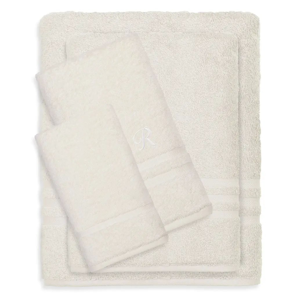 Hotel And Spa Omni Turkish Cotton Terry 3-Piece Cream Bath Towel Set With White Script Monogrammed Initial - H