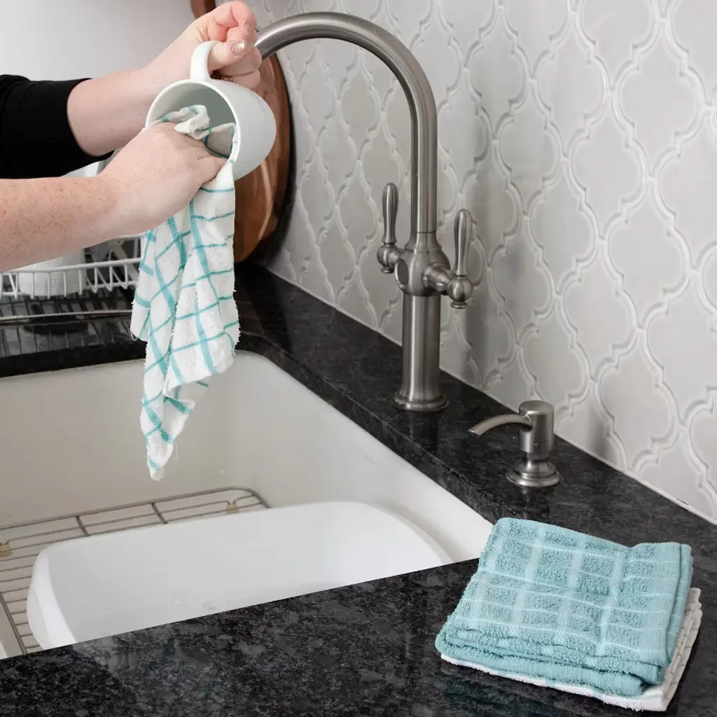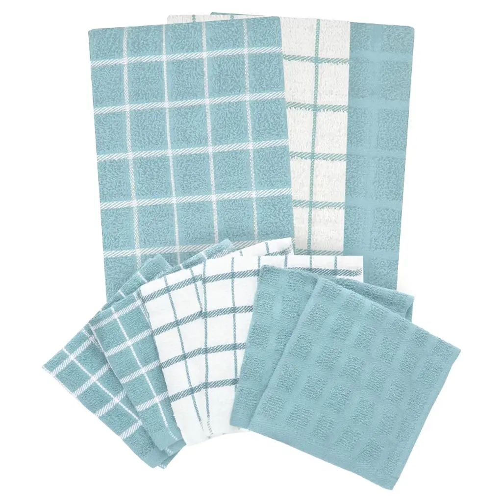 This value-packed collection of RITZ Kitchen Towels and Dishcloths is designed to elevate your kitchen experience with exceptional features and vibrant options. Crafted from 100% cotton these towels are a perfect blend of softness and durability. Whether you're tackling everyday spills or heavy-duty kitchen cleaning these towels can handle it all. You can rely on their strength and absorbency to make your tasks easier.The set includes 6 terry check dishcloths and 3 terry check kitchen towels. With this variety of stylish options you'll have the perfect kitchen accessories to suit your taste!These multitask masters are ready for any challenge. Use them to dry dishes wipe down counters or mop up spills with ease. Your kitchen messes won't stand a chance with these reliable companions by your side. They're not just limited to the kitchen - these versatile towels can also enhance your bathroom and home decor.Available in a range of colors these household essentials will not only keep your space clean and tidy but also add a vibrant touch to your kitchen and home. Choose the shades that match your style and brighten up your surroundings. 3 Kitchen Towels 6 Dish Cloths. This value set of RITZ kitchen towels and dishcloths includes 6 terry check dishcloths (12 in. by 12 in. | 30 cm x 30 cm) and 3 terry check kitchen towels (measuring 15 in. x 25 in. | 38 cm x 63 cm) giving you a variety of stylish options to choose from for your kitchen accessories. 100% Cotton. Crafted with highly absorbent 100% cotton these dish towels are soft yet tough as nails perfect for the kitchen and household essentials. You can count on them to hold up to even the toughest kitchen cleaning challenges. Multitask Masters. These kitchen towels are the ultimate multitaskers perfect for drying dishes wiping counters and even mopping up spills. Get ready to conquer your kitchen messes like a superhero! From wiping down your stovetop to drying your dishes these dish towels for the kitchen are like a trusty sidekick by your side. Plus they're also great for bathroom and home decor. They're versatile and reliable always ready for action. Machine Washable. These towels are machine washable so you can easily freshen them up after a day of battling kitchen messes. They're the laundry day heroes you need in your life.
