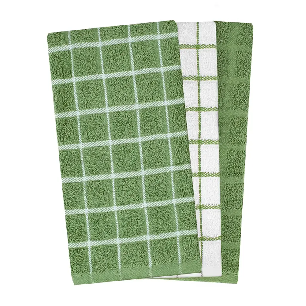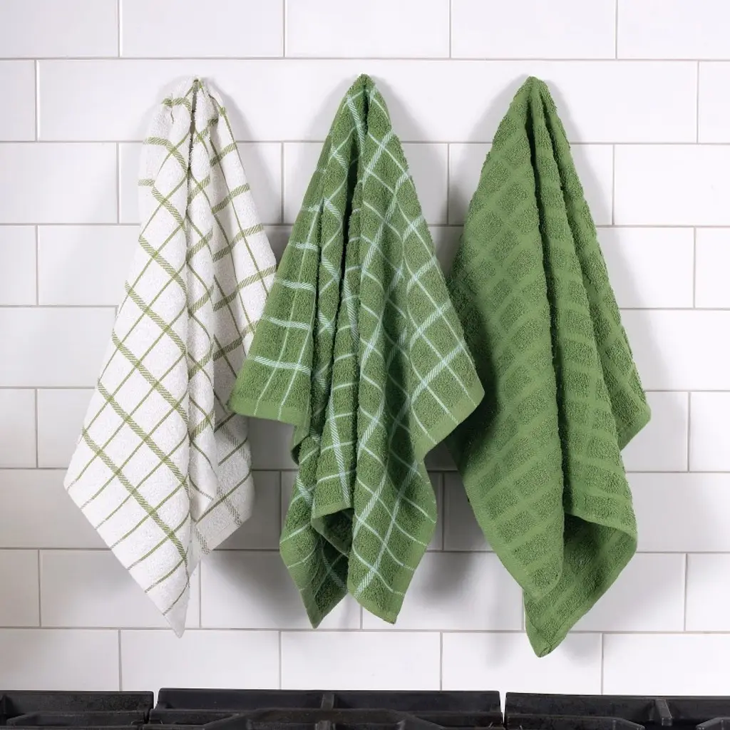 John Ritzenthaler Co. Terry Check Kitchen Towel Set 3-pack 15" X 25" Cactus