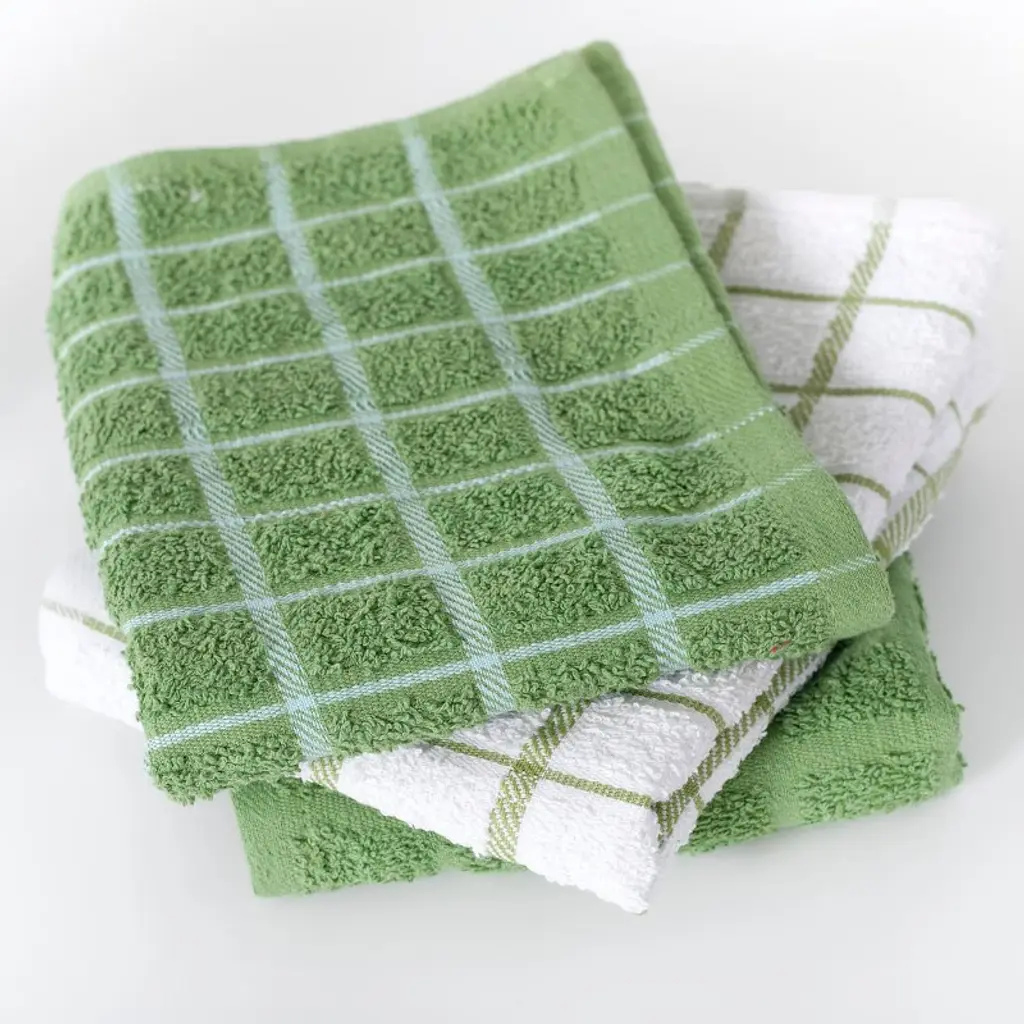 Sturdy as they are soft this set of 3 RITZ Terry Check Kitchen Towels offers durable effectiveness throughout the home no matter how tall the task. Crafted with 100% cotton and featuring terry-loop construction these absorbent towels are designed with a special woven technology that makes them perfect for drying dishes and wiping down surfaces. Ample 15 in. by 25 in. (40 cm by 63 cm) sizing ensures these versatile towels tackle tasks with ease and a variety of charming colors ensures they look good doing it. Machine washable for hassle-free cleaning. Set of 3 kitchen towels. Includes: 1 solid-colored towel 1 dark check-patterned towel and 1 light check-patterned towel. Designed with a "wave" terry-loop construction featuring special woven technology. 15 in. by 25 in. (40 cm by 63 cm). Machine washable.