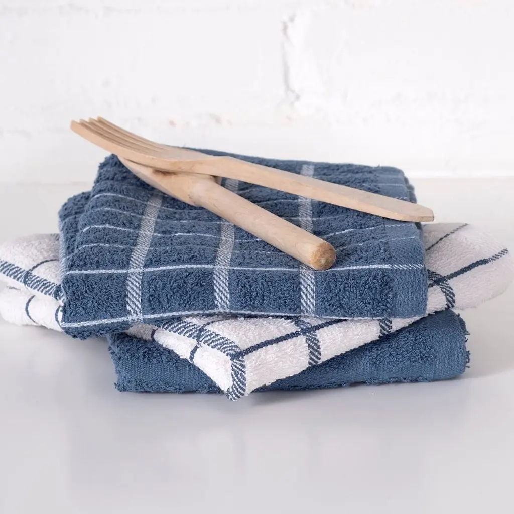 John Ritzenthaler Co. Terry Check Kitchen Towel Set 3-pack 15" X 25" Federal Blue
