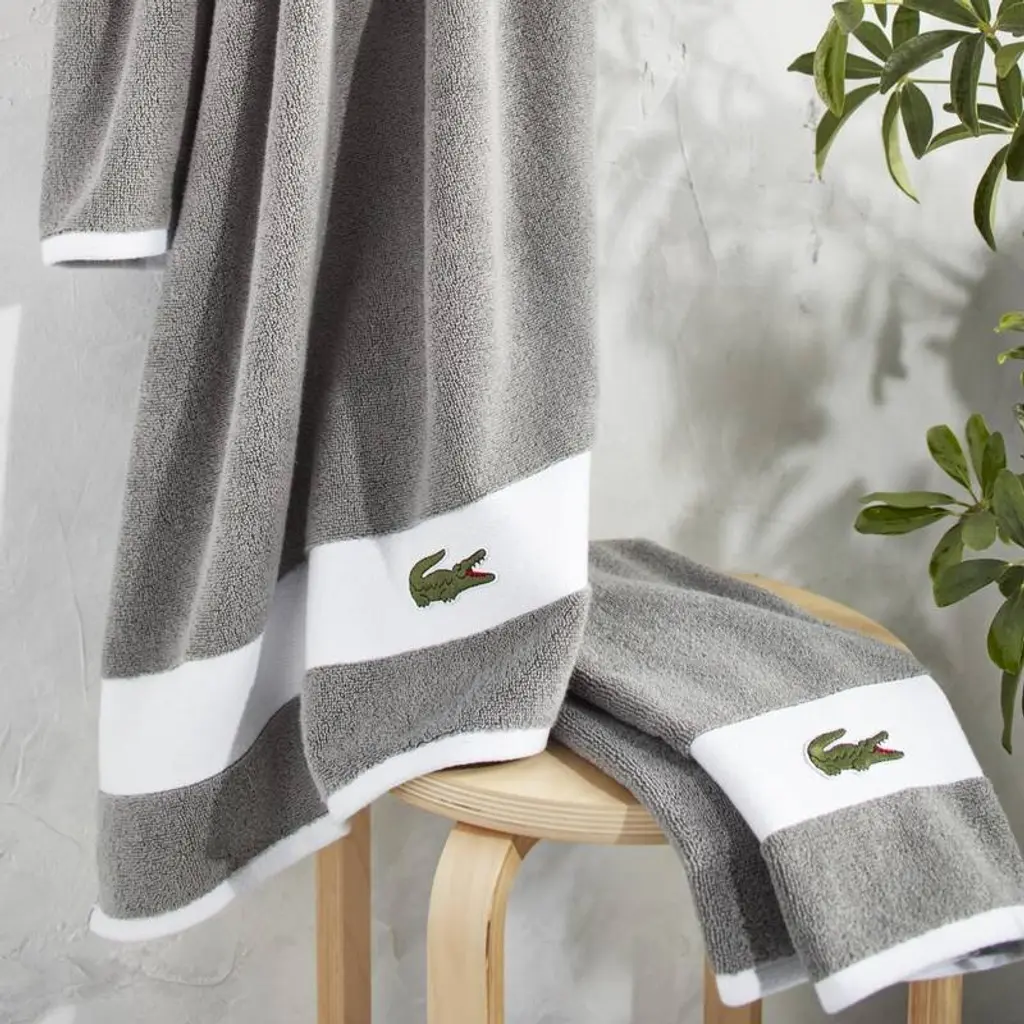 Featuring bold stripes and the iconic Lacoste croc logo, this premium towel set from Lacoste adds a stylish touch to any bathroom. Made from 100% Supima cotton and yarn-dyed for lasting color, this collection offers exceptional softness, durability, and a touch of luxury to your home. Features:Dimensions: