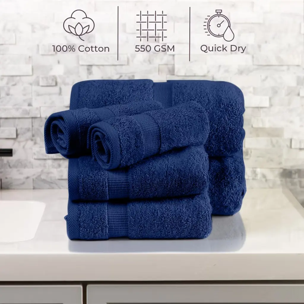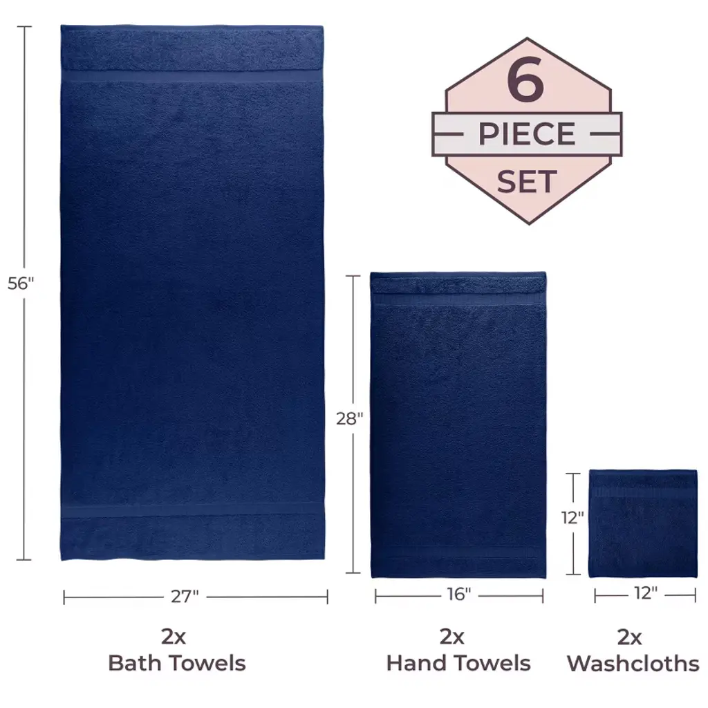 Lavish Home 6 Piece Cotton Bath Towel Set, Navy