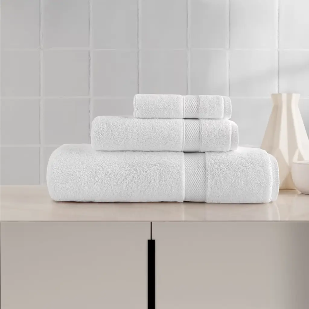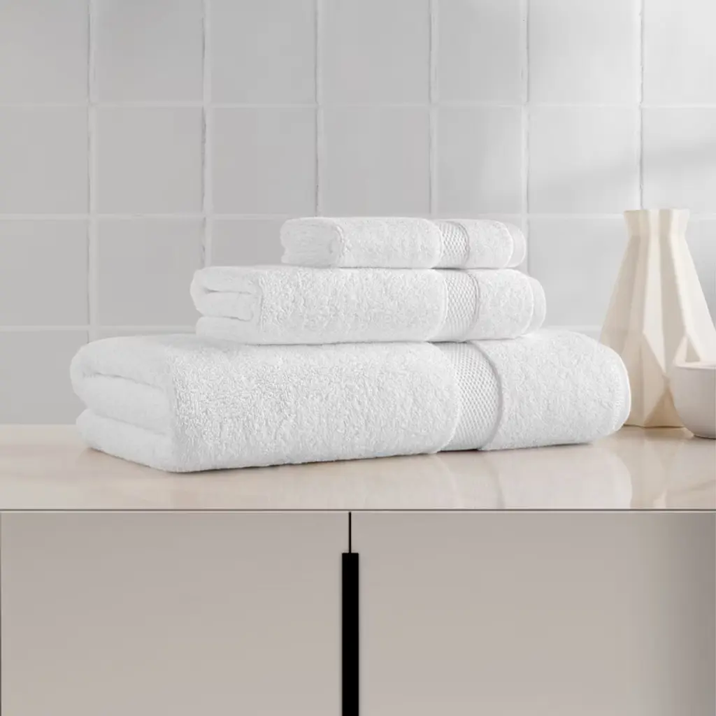 The Anovia Collection Oversized Terry Towels are made of finest quality 100% Turkish cotton for supreme absorbency, durability and softness of touch. With securely stitched edges and decorative basket weave dobby stripe, the Anovia collection towels bring elegance to your bath decor and make a great gift.