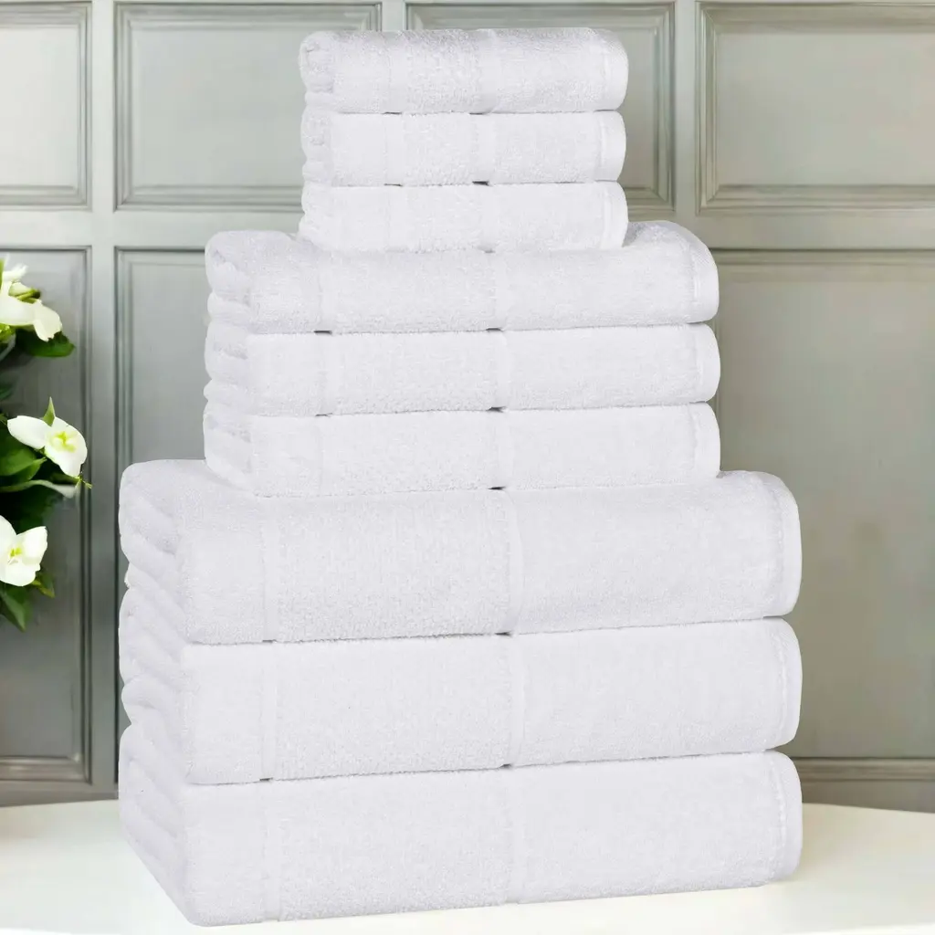 The Anovia Collection Oversized Terry Towels are made of finest quality 100% Turkish cotton for supreme absorbency, durability and softness of touch. With securely stitched edges and decorative basket weave dobby stripe, the Anovia collection towels bring elegance to your bath decor and make a great gift.