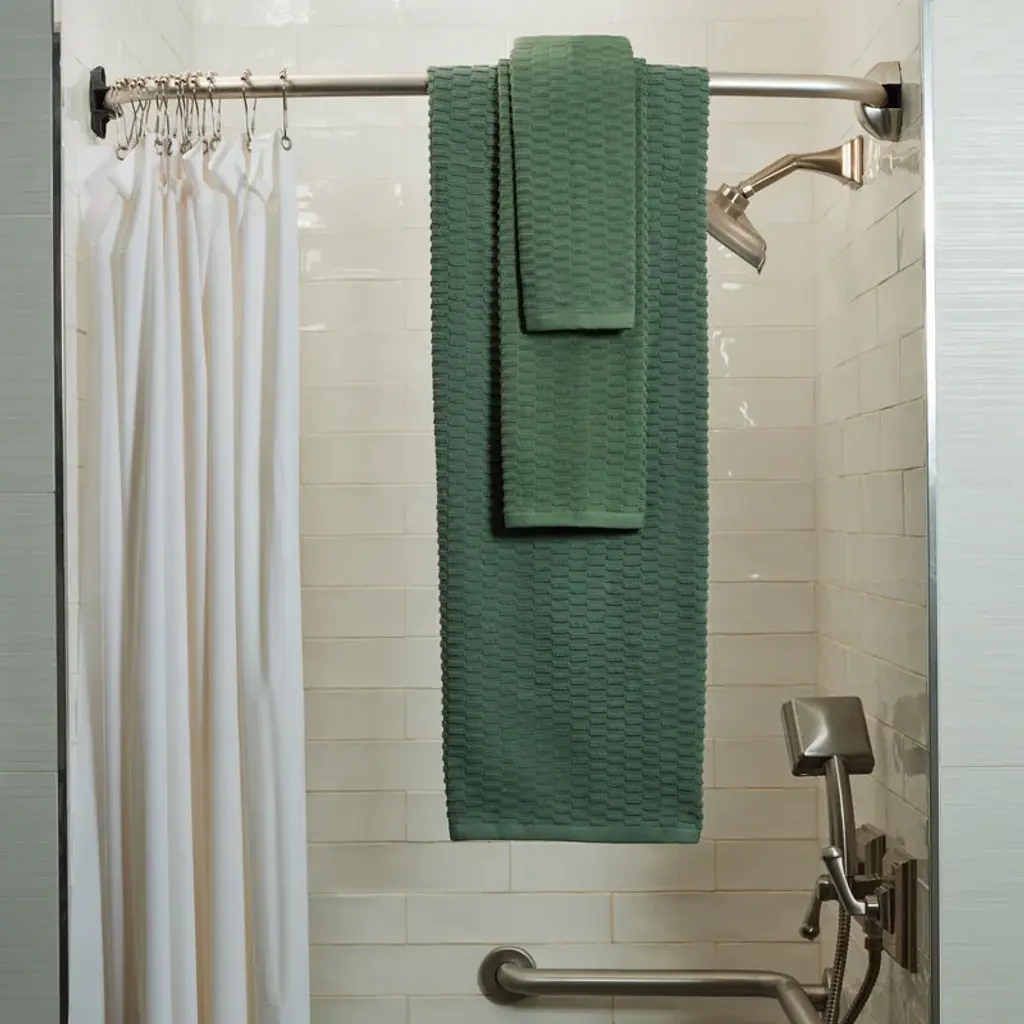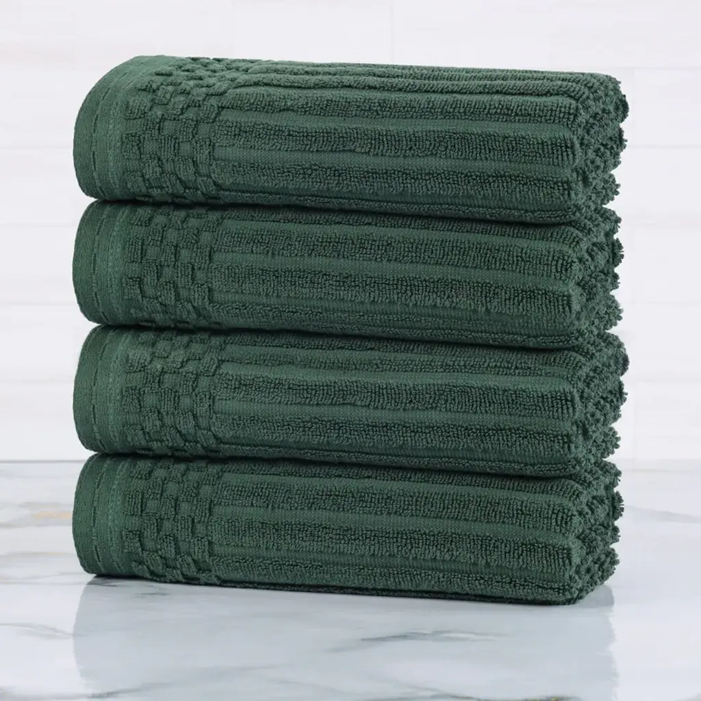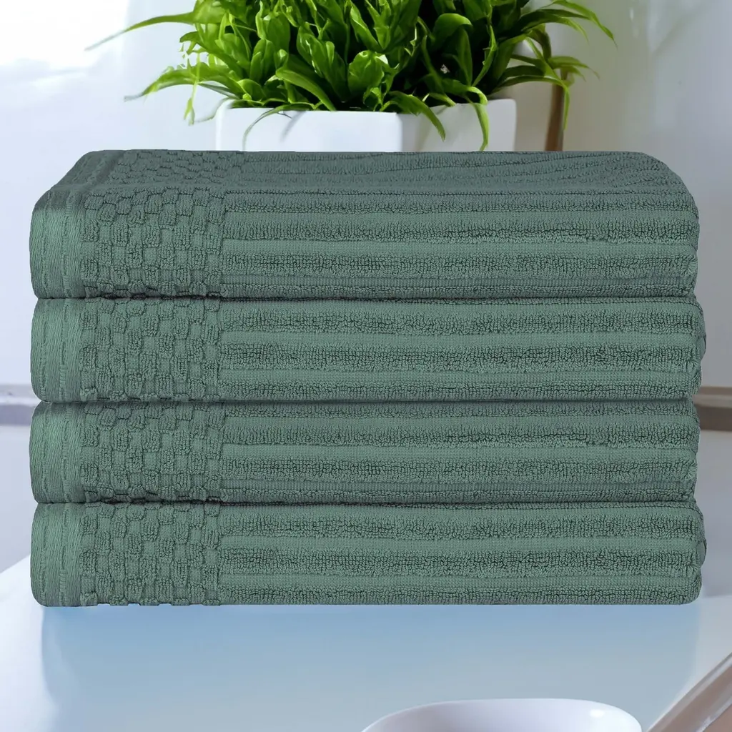 Oversized 30 x 56 bath towel textured waffle weave for loofah like friction very absorbent plush and soft a spa experience coordinated generous hand towel and face cloth beautiful colors for any bathroom. 100% Cotton Oversized Loofah Like Plush and absorbent Set includes: 2 Bath, 2 Hand, and 2 Wash Machine Washable Made in India