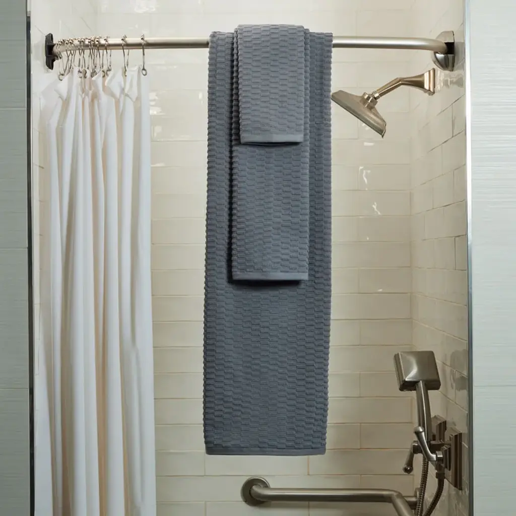 Oversized 30 x 56 bath towel textured waffle weave for loofah like friction very absorbent plush and soft a spa experience coordinated generous hand towel and face cloth beautiful colors for any bathroom. 100% Cotton Oversized Loofah Like Plush and absorbent Set includes: 2 Bath, 2 Hand, and 2 Wash Machine Washable Made in India