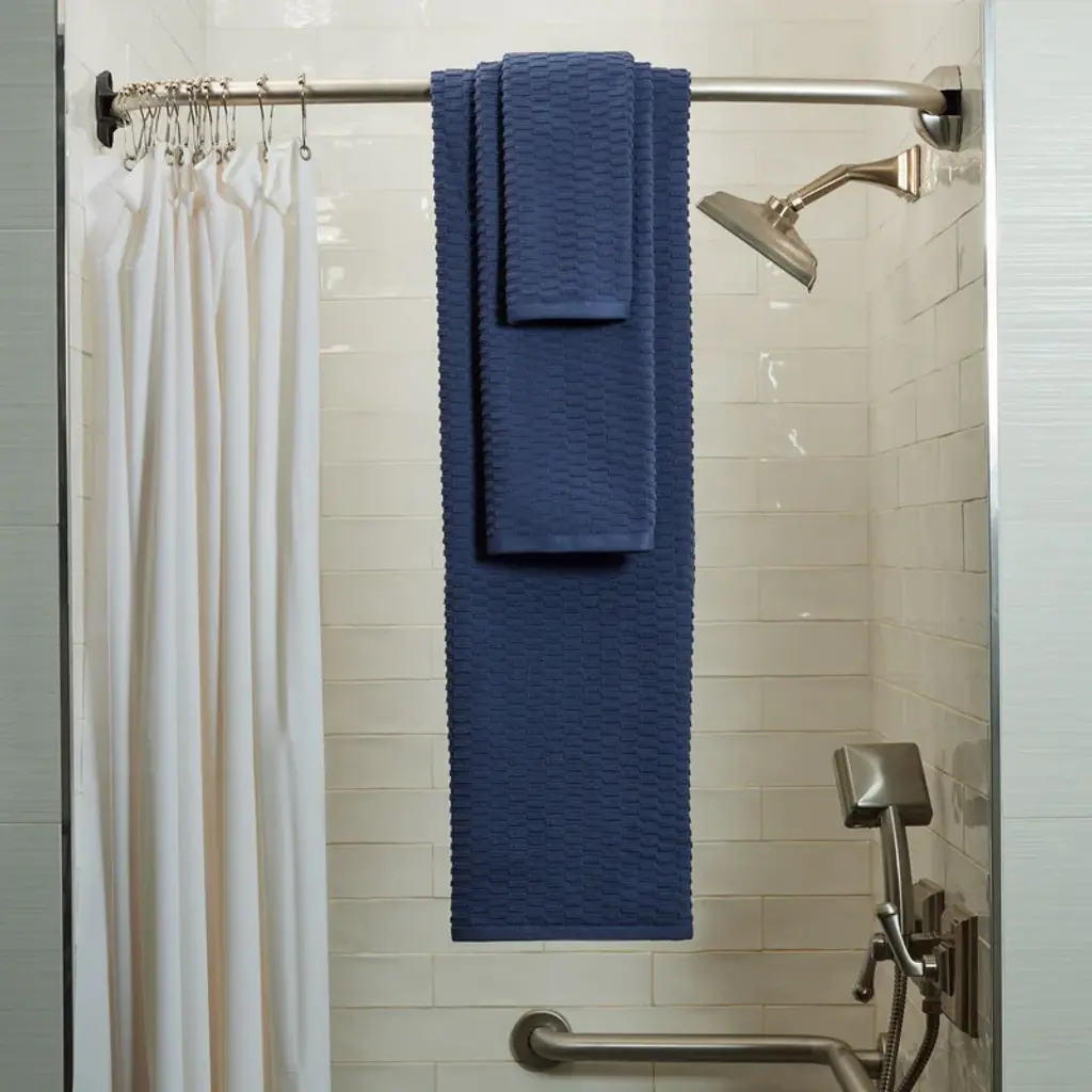 Oversized 30 x 56 bath towel textured waffle weave for loofah like friction very absorbent plush and soft a spa experience coordinated generous hand towel and face cloth beautiful colors for any bathroom. 100% Cotton Oversized Loofah Like Plush and absorbent Set includes: 2 Bath, 2 Hand, and 2 Wash Machine Washable Made in India