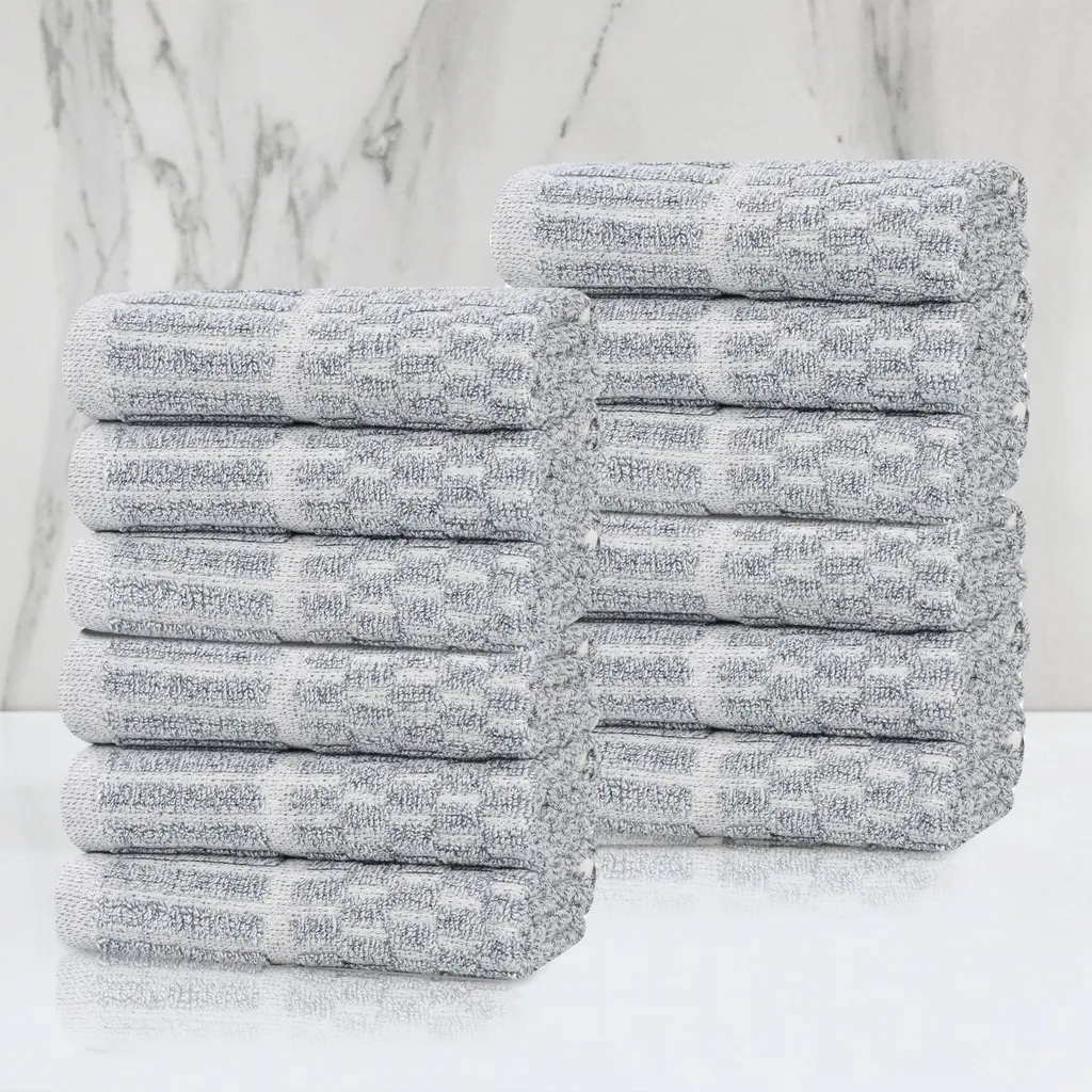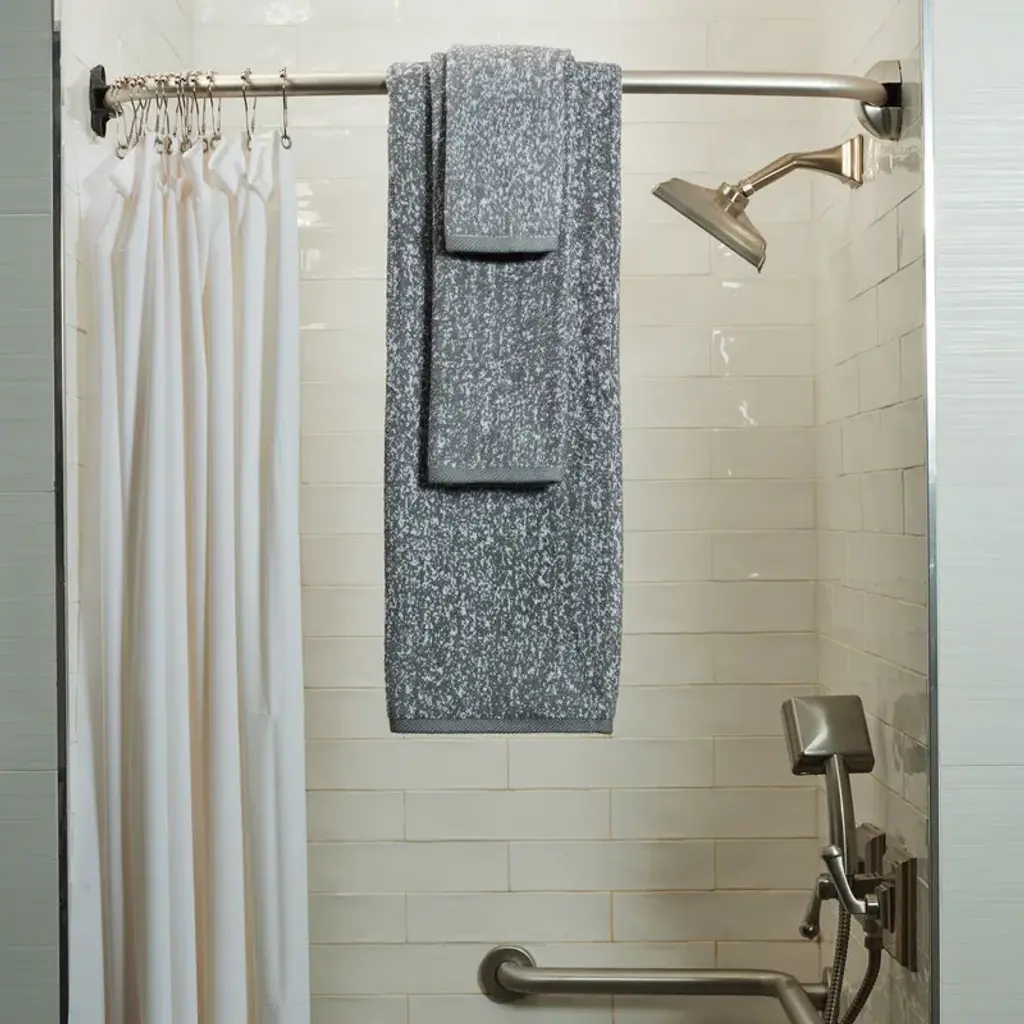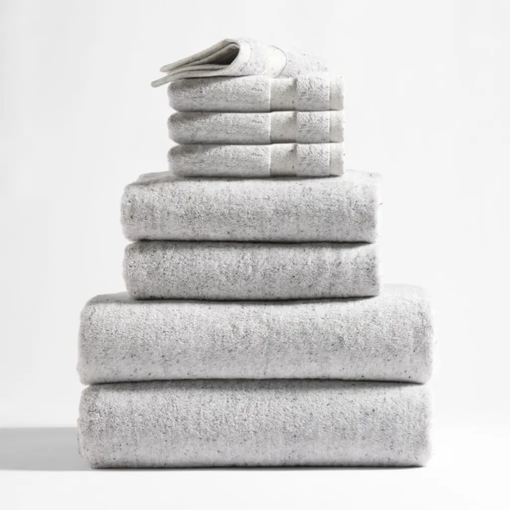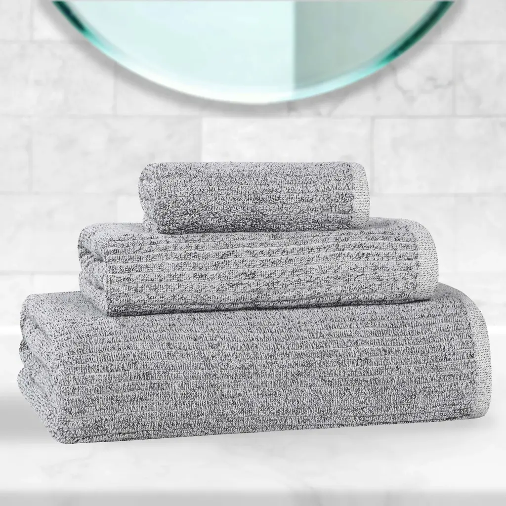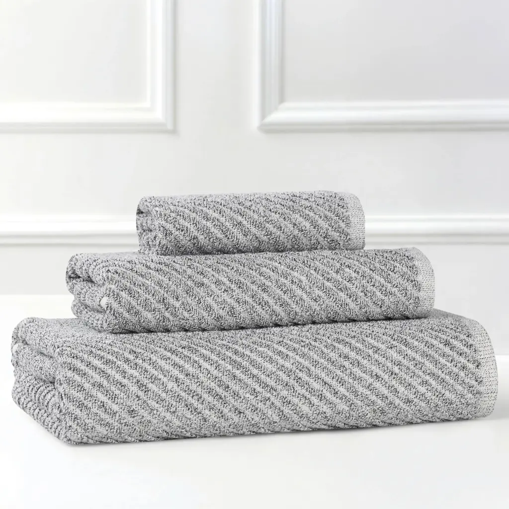 The London towel 6pc sets are beautifully designed of mingled yarns. Creating an elegant decor and available in an array of colors perfect in any bathroom. Beautifully constructed and wonderfully soft give the sense of a luxury spa. Features 100% Cotton Mingled Yarns Expertly designed Available in Spruce, Rose, Granite, and Blue Set includes: 2 Bath, 2 Hand, and 2 Wash Machine Washable Made in India